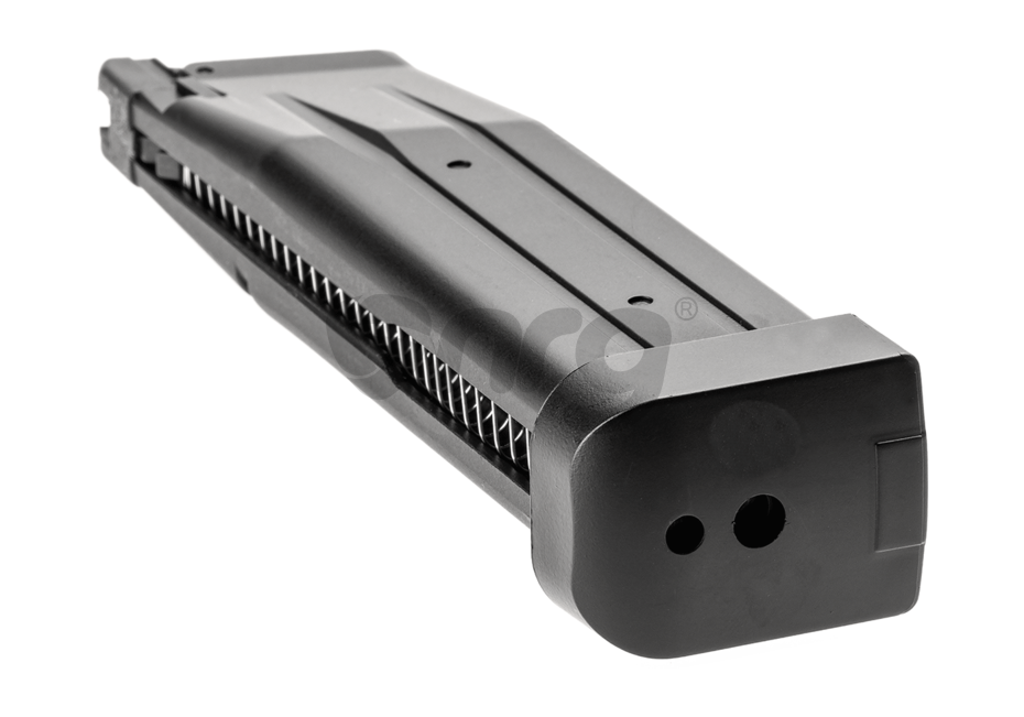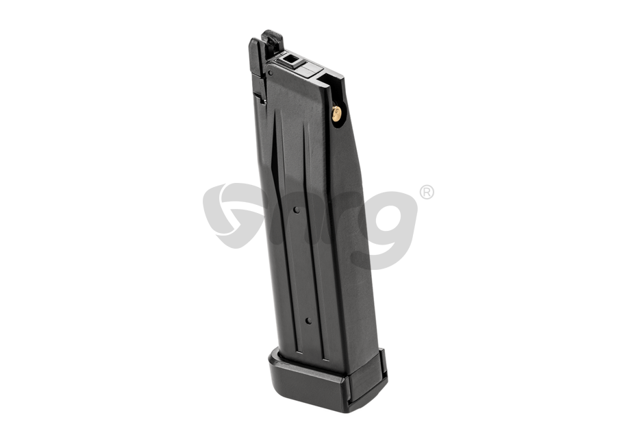 Incarcator produs de catre Golden Eagle pentru platforma Hi-Capa 3302/3304 . Acest incarcator poate fi folosit cu gaz Green Gas sau alte variante de gaz cu propietati asemanatoare.Este construit din metal iar gura de alimentare cu bile este din plastic. Capacitatea incarcatorului este de 25 de bile de 6mm.