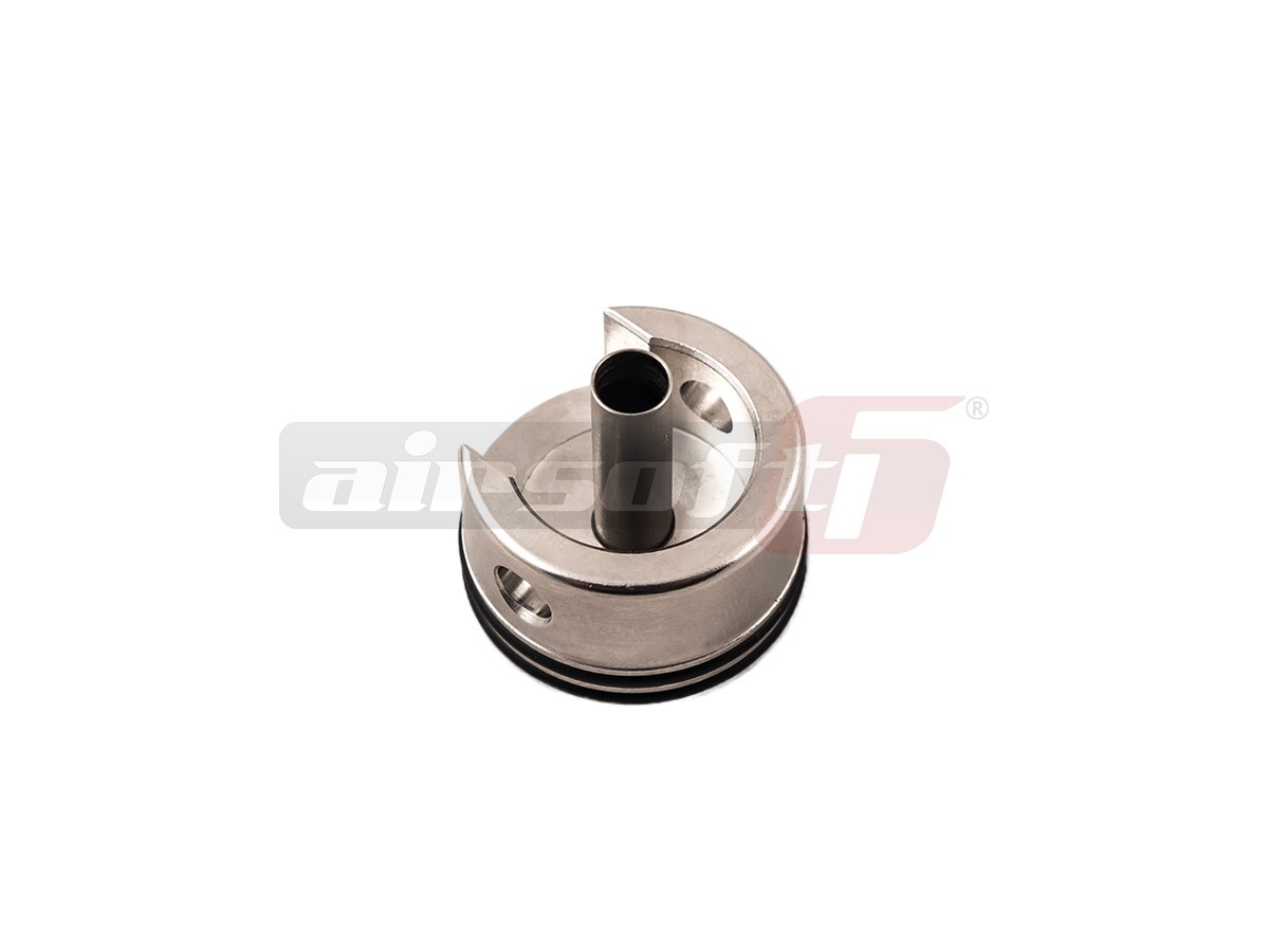Cap cilindru marca Guarder destinat gearboxului versiune 2. Este fabricat din otel inoxidabil si este prevazut cu cauciuc pentru amortizarea pistonului. Pentru o mai buna compresie este dotat cu 2 garnituri la imbinarea cu cilindrul. Inlocuieste cu succes capul de cilindru clasic din plastic oferind o rezistenta sporita pe termen lung. Este recomandat upgrade-urilor de putere sau pentru o fiabilitate crescuta.