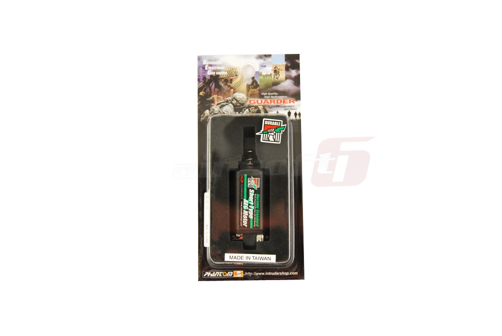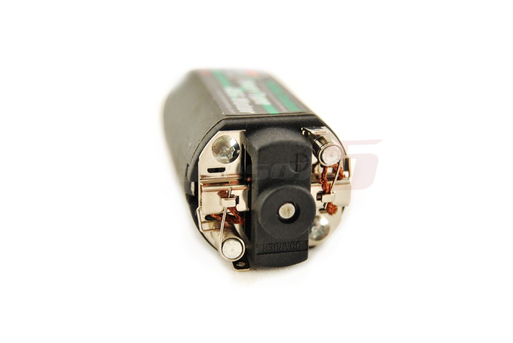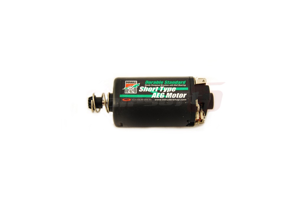 Motorul standard fabricat de Guarder este proiectat pentru configuratii stabile in care motorul nu joaca rol nici ca viteza nici ca putere. Este un motor echilibrat intre putere si viteza ce poate fi folosit cu arcuri intre 80 si 120 m/s cu tensiuni intre 7.4V si 9.6V in conditii de deplina siguranta. Motorul este prevazut cu pinion din otel tratat termic pentru a rezista uzurii intense. Pentru o mai buna functionare motorul este prevazut cu rulmenti. Atentie! Magnetii motorului sunt foarte puternici.