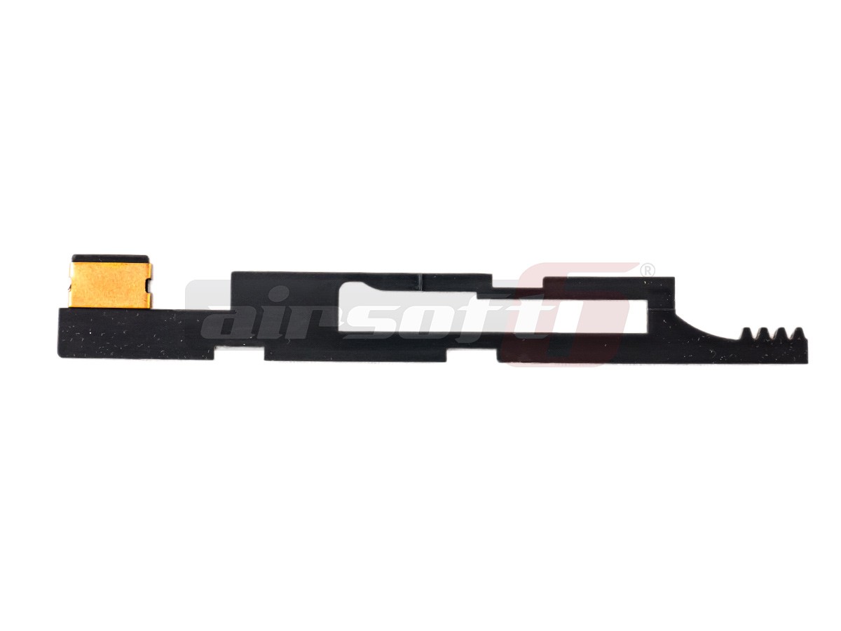 Placuta selector tir marca Guarder cu lamela de contact, pentru versiunile 3 de gearbox platformele AK, prevazute cu siguranta suplimentara la contact. Poate fi folosita si la versiunile de gearbox fara contact de siguranta suplimentar. Este fabricata policarbonat si alama.