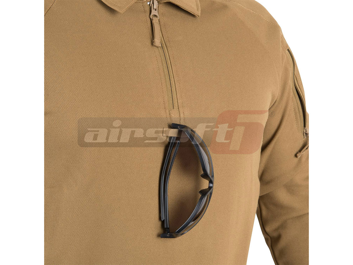 Lateralele bluzei sunt din material nylon si spandex gandite sa protejeze zonele cele mai expuse uzurii rezultate din frecarea cu maneca sau datorita centurii si/sau echipamentului montat pe ea. La subrat sunt doua sectiuni din plasa, special gandite pentru a asigura eliminarea rapida a caldurii. Gulerul bluzei se inchide cu ajutorul unui fermoar.