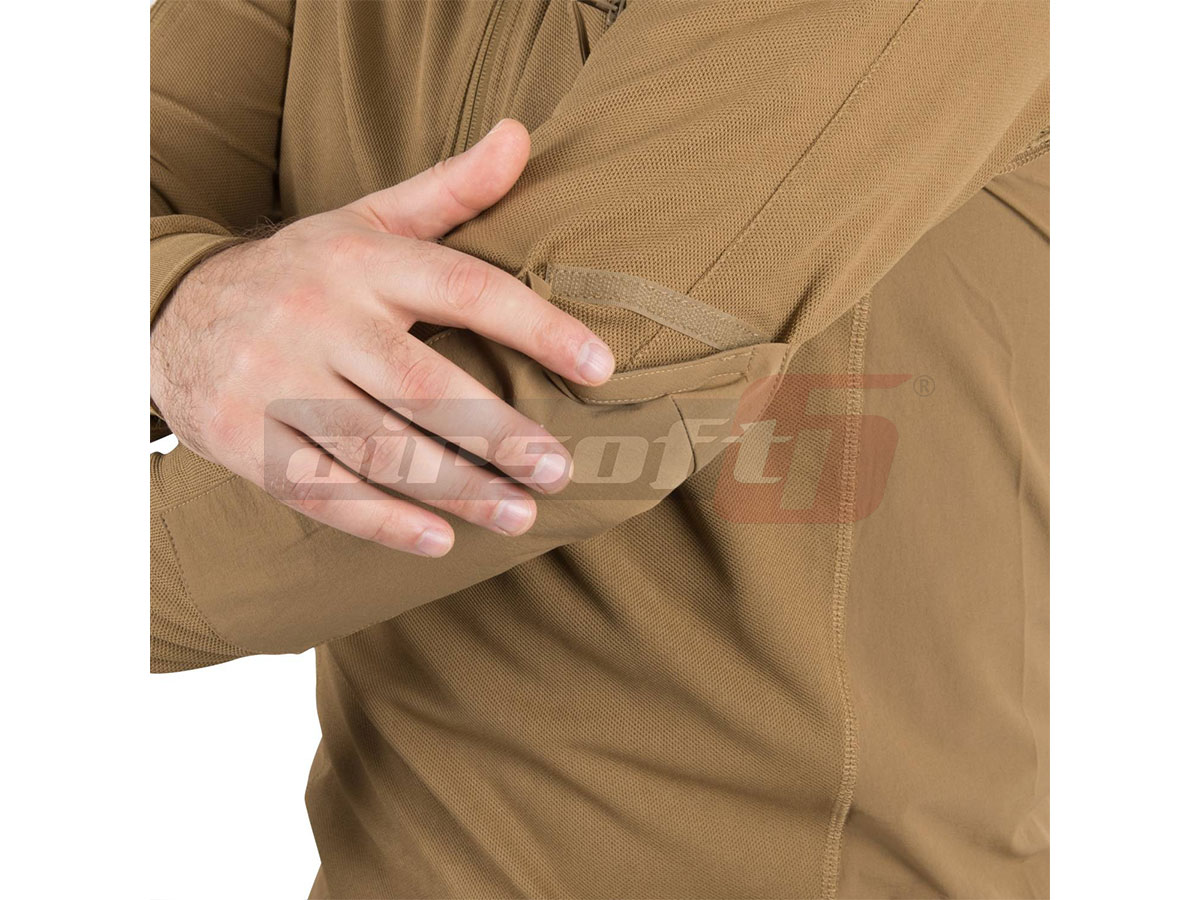 Lateralele bluzei sunt din material nylon si spandex gandite sa protejeze zonele cele mai expuse uzurii rezultate din frecarea cu maneca sau datorita centurii si/sau echipamentului montat pe ea. La subrat sunt doua sectiuni din plasa, special gandite pentru a asigura eliminarea rapida a caldurii. Gulerul bluzei se inchide cu ajutorul unui fermoar.