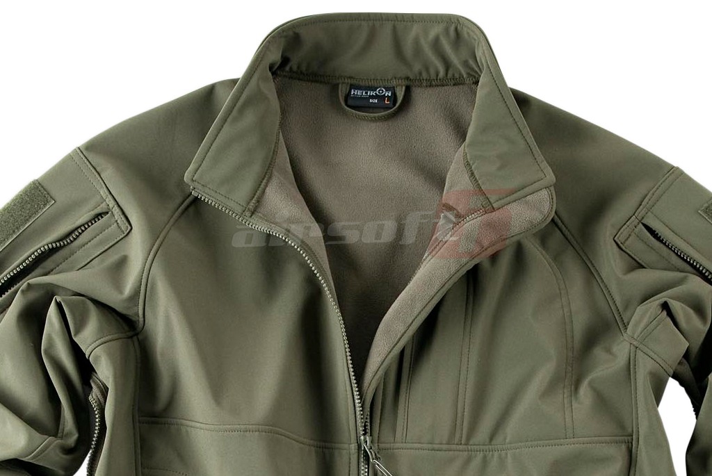 Aceasta jacheta fabricata de Helikon-Tex este protectata pentru a oferi utilizatorului protectie impotriva vantului, a umezelii si confort termic bun. Pentru protectie impotriva umezelii s-a folosit materialul sintetic Shark Skin. Acest material modern ofera un grad de mobilitate excelent cu bune propietati de evaporare a umezelii. In plus exista un strat de teflon Dupont pentru impermeabilitate. Urmatorul strat reprezinta o membrana originala Helikon-Tex impotriva vantului iar in interior este utilizata o captuseala din material sintetic flausat pentru a crea o perna de aer cald. Croiala jachetei ofera un grad de confort ridicat si o buna manevrabilitate. Buzunarele sunt atent amplasate in locuri cheie pentru un acces usor iar spatiul interior este mare.