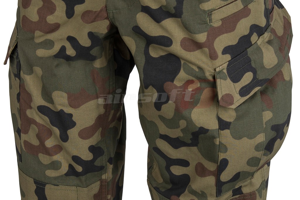 Culoarea pantalonului este Pl Woodland, acest camuflaj este utilizat de catre toate ramurile fortelor armatei Poloneze.