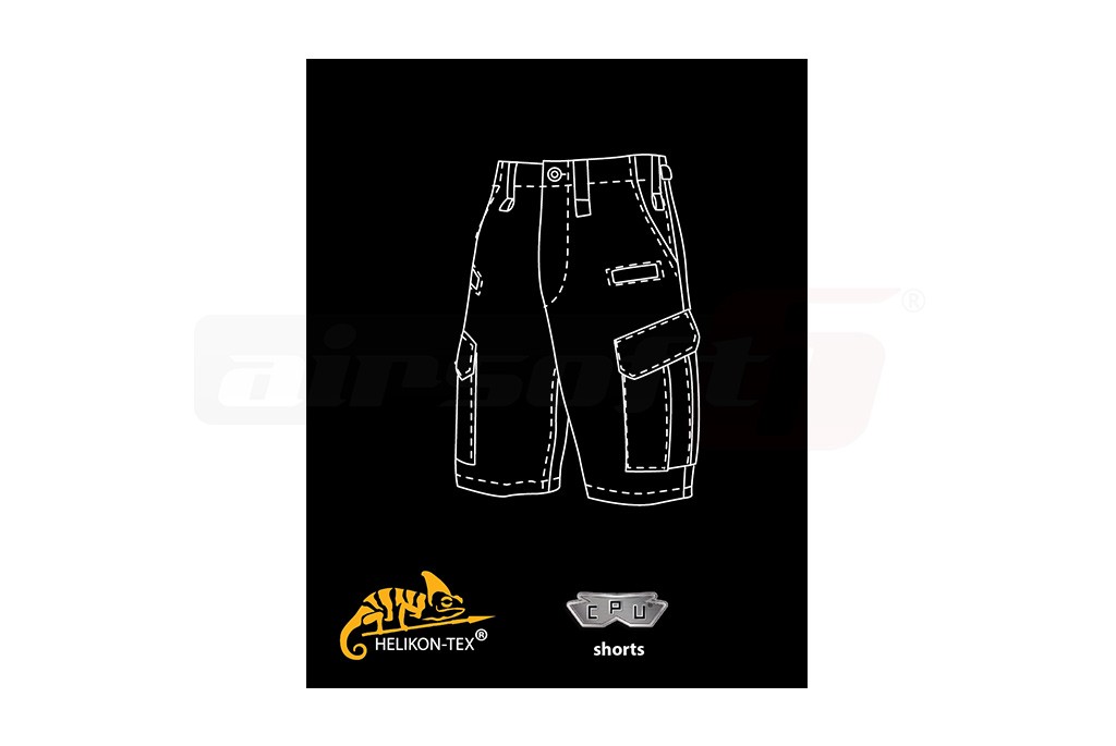 Pantaloni scurti seria Combat Patrol Uniform marca Helikon-Tex. Acesti pantaloni reprezinta versiunea scurta a modelului CPU care urmareste exact caracteristicile impuse de fortele armatei poloneze conform reglementarilor din anul 2010 pentru uniforma standard. Croiala pantalonului, materialele utilizate si accesorizarea acestuia alcatuiesc o serie de calitati menite sa imbunatateasca pe cat posibil randamentul utilizatorului. Materialul utilizat este o combinatie intre Bumbac si Poliester mai exact 60% bumbac pentru confort si 40% poliester pentru a oferi rezistenta sporita materialului impotriva rupturilor.