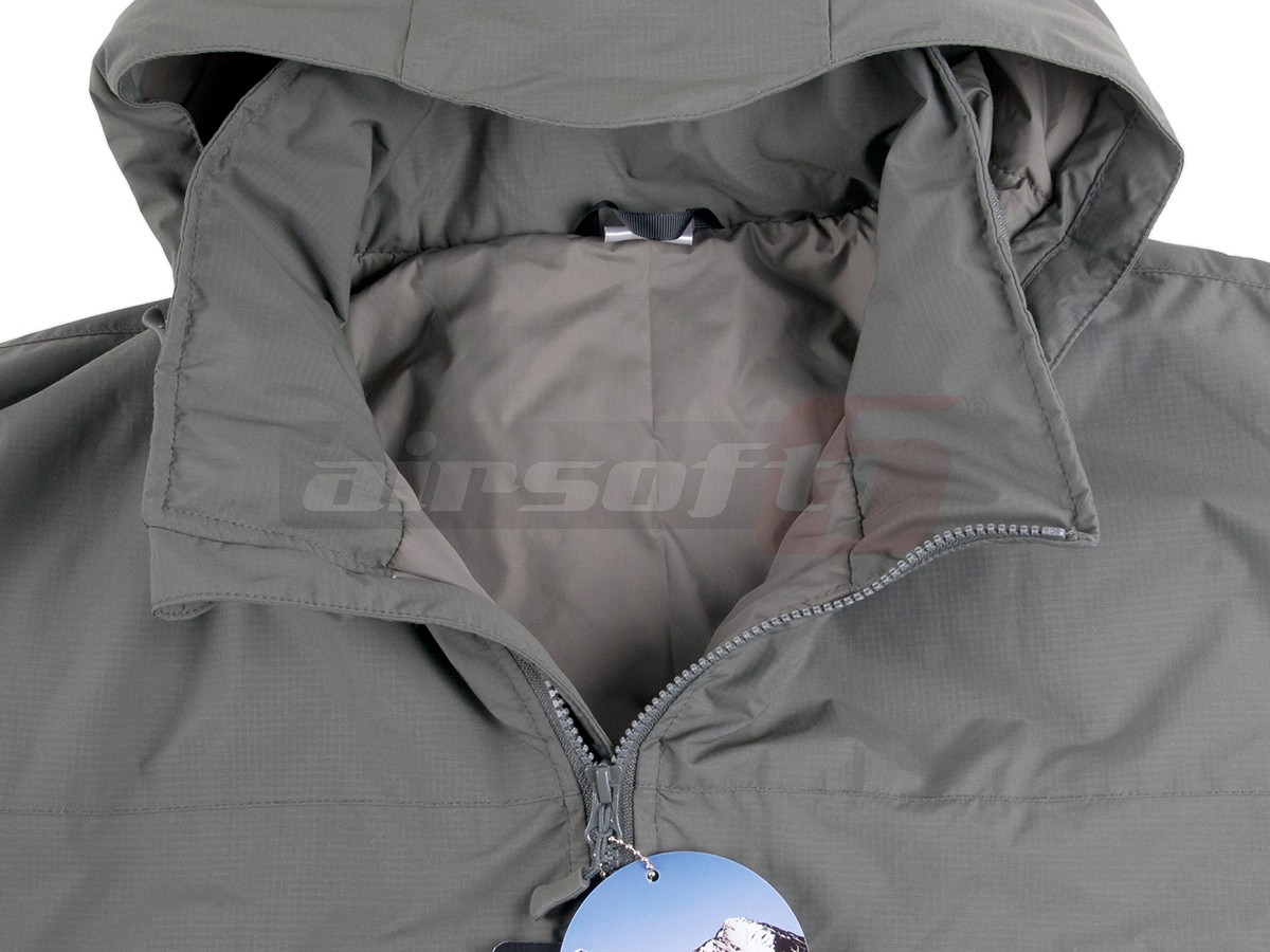 Geaca LEVEL 7 este, in acest moment, cea mai groasa geaca oferita de Helikon-Tex publicului. Producatorul a gandit acest articol vestimentar avand un scop principal si anume acela de a oferi protectie maxima impotriva frigului chiar si in cele mai aspre conditii de exploatare. Secretul acestei geci consta in primul rand in stratul de izolatie numit Climashield Apex. Acest material este capabil sa genereze si sa pastreze confortul termic optim chiar daca este uscat sau ud. In afara de propietatile uluitoare de izolatie, acest material este si extrem de usor, permitand astfel reducerea considerabila a greutatii intregului ansamblu. Exteriorul gecii este acoperit cu un strat subtire de nylon ramforsat ripstop, ce deasemenea ajuta la pastrarea greutatii reduse a gecii. Un aspect ce trebuie mentionat este posibilitatea de a compacta considerabil geaca atunci cand este impachetata, fara a periclita integritatea structurala a ei.