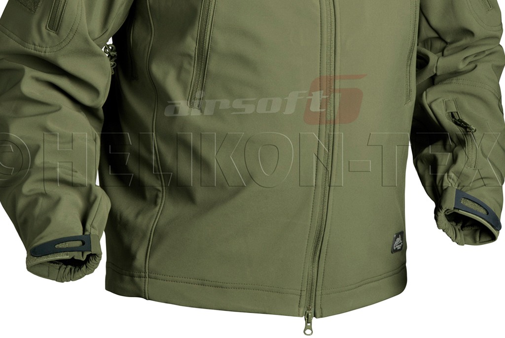 Jacheta Gunfighter fabricata de Helikon Tex a fost proiectata in ideea de a oferi utilizatorului un grad de protectie ridicat si utilitatea necesara in timpul actiunii pe campul de lupta. Materialele utilizate ofera un confort termic bun, protectie impotriva vantului si a umezelii fara a restrictiona gradul de aerisire necesar in timpul efortului. Sunt utilizate 3 straturi esentiale de materiale; Shark Skin fabricat in intregime din poliester acoperit cu un strat impermeabil de teflon Dupont, o membrana Helikon-Tex menita sa impiedice penetrarea vantului in interior si in interior exista un strat moale sintetic menit sa creeze o perna de aer cald imbunatatind astfel confortul termic.