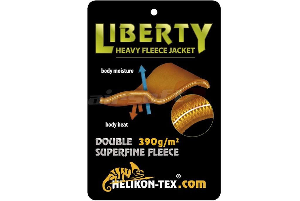 Jacheta Liberty fabricata de Helikon Tex este utilizata in anotimpul rece datorita stratului dublu flausat moale, ce pastraza un confort termic optim. Cu toate ca izoleaza aproape complet interiorul jachetei de exterior, materialul este astfel conceput incat sa poata preveni supraincalzirea.