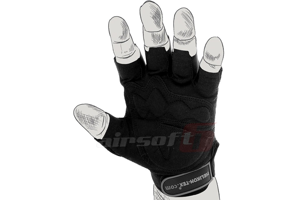 Aceste manusi fabricate de Helikon-Tex sunt destinate utilizarii in zone sau medii cu temperaturi ridicate. Sunt special concepute pentru a putea elimina rapid caldura excesiva si transpiratia. In zona palmei este utilizata piele sintetica ramforsata pentru aderenta iar in partea exterioara este o combinatie de materiale sintetice precum; neopren, nylon, spandex si lycra astfel gandite pentru a imbunatati confortul termic al utilizatorului si a oferi un grad de protectie superior. Croiala manusilor este cu jumatate de deget, in felul acesta este avantajata manevrabilitatea. In partea frontala exista o sectiune prevazuta cu un gel special cu rol de atenuare a socurilor.