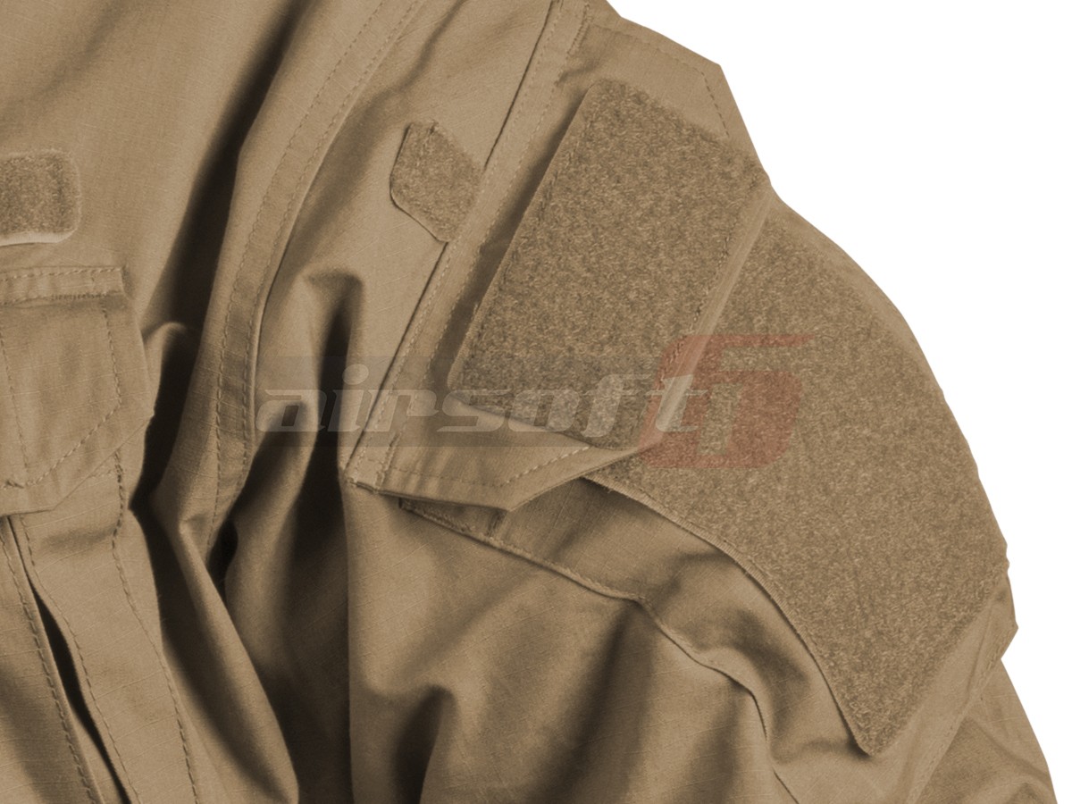In zona pieptului si a umerilor exista sectiuni prevazute cu arici pentru a putea atasa legitimatii sau patch-uri. Zona coatelor este ramforsata cu material pentru a preveni uzura iar tot in ramforsare exista un spatiu destinat protectiilor suplimentare.
