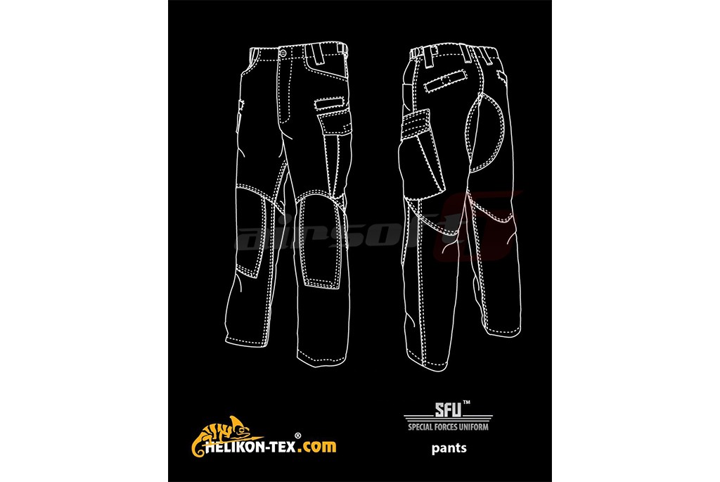 Avem placerea de a va prezenta noua generatie a celebrilor pantaloni SFU. Asemenea versiunii originale acesti pantaloni reprezinta partea inferioara a costumatiei SFU sau Special Force Uniform. Tinuta SFU este un concept, menit sa intruneasca toate avantajele unei tinute militare moderne. Materialul utilizat si croiala ofera utilizatorului un randament bun in toate situatiile. Materialul utilizat este o combinatie intre Bumbac si Poliester, mai exact 60% bumbac pentru confort si 40% poliester pentru a oferi rezistenta sporita materialului impotriva rupturilor. Buzunarele sunt numeroase si amplasate in locuri importante pentru un acces cat mai usor.