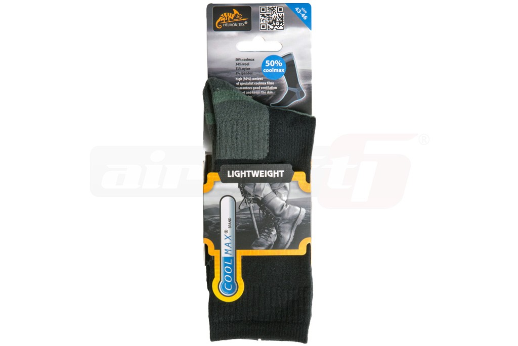 Sosete subtiri destinate anotimpurilor calduroase, fabricate de Helikon-Tex. Sunt fabricate dintr-un material modern numit Coolmax. Compozitia exacta este dupa cum urmeaza: coolmax 50%, lana 34%, nilon 13% si spandex 3%. Aceasta compozitie de materiale vor oferii utilizatorului un grad de confort termic superior. Designul acestor sosete prevede ca talpa, partea frontala si calcaiul sunt ramforsate, pentru a rezista cu succes uzurii in timp. Zona gleznei este prevazuta cu o zona elastica pentru a fixa ferm soseta pe picior, impiedicand alunecarea acesteia.