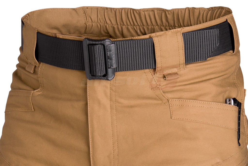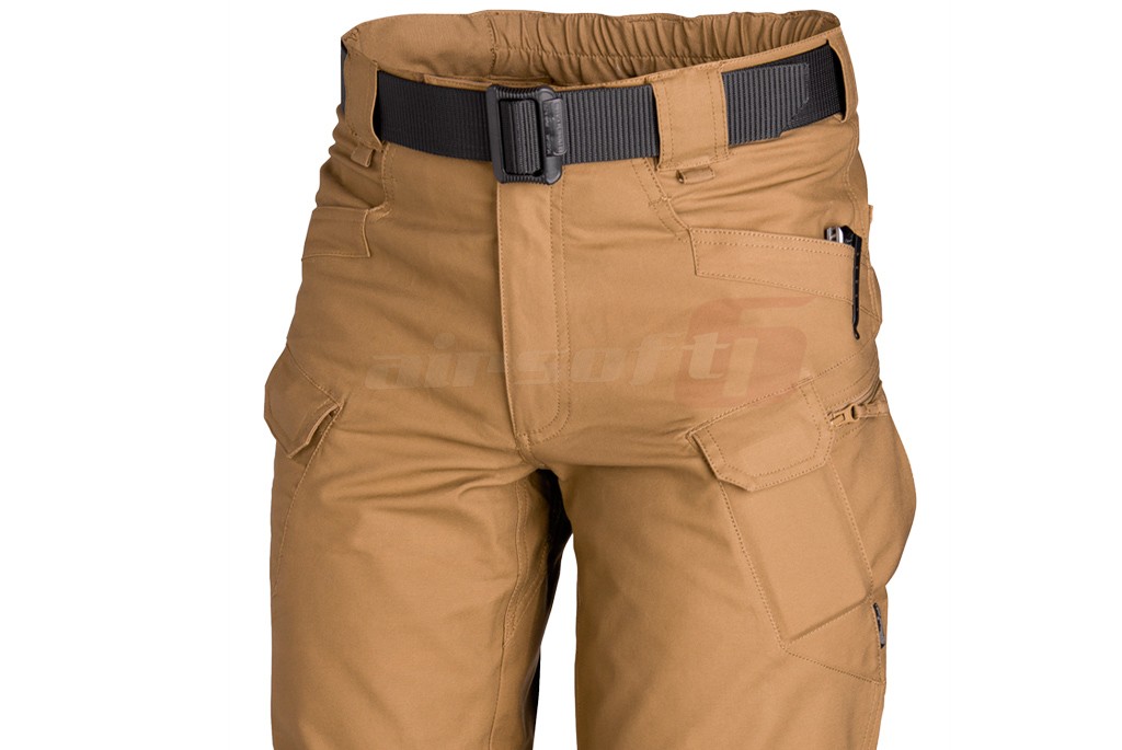 Pantaloni tactici Urban Tactical Line. Designul si functionalitatea acestor pantaloni permite utilizarea lor de catre trupele speciale, echipele de interventie sau paza si protectie. Croiala pantalonilor este menita sa ofere libertate de miscare purtatorului dar totodata sa pastreze linia unor pantaloni obisnuiti. Acest avantaj este obtinut utilizand un material alcatuit din 97 % bumbac si 3 % Spandex ce permite intinderea materialului in 2 directii. Atentie, exista 2 variante de material pentru pantalonii UTL, varianta 97% bumbac - 3% spandex si varianta 80% bumbac - 19% poliester - 1% spandex. Buzunarele sunt atent amplasate si orientate, oferind utilizatorului acces rapid la continului lor.