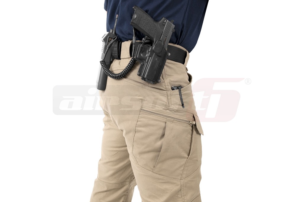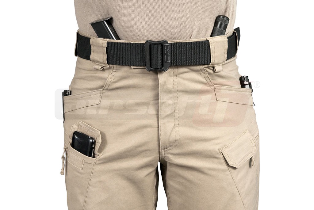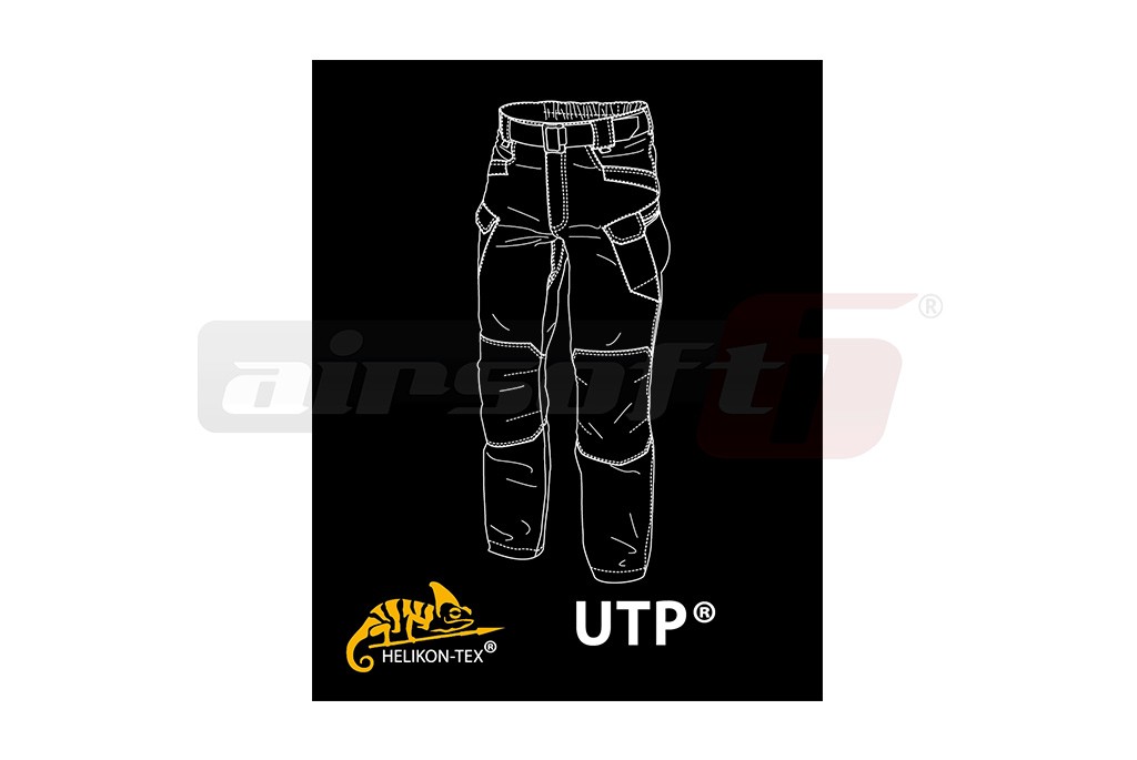 Pantaloni tactici Urban Tactical Line. Designul si functionalitatea acestor pantaloni permite utilizarea lor de catre trupele speciale, echipele de interventie sau paza si protectie. Croiala pantalonilor este menita sa ofere libertate de miscare purtatorului dar totodata sa pastreze linia unor pantaloni obisnuiti. Acest avantaj este obtinut utilizand un material alcatuit din 97 % bumbac si 3 % Spandex ce permite intinderea materialului in 2 directii. Atentie, exista 2 variante de material pentru pantalonii UTL, varianta 97% bumbac - 3% spandex si varianta 80% bumbac - 19% poliester - 1% spandex. Buzunarele sunt atent amplasate si orientate, oferind utilizatorului acces rapid la continului lor.