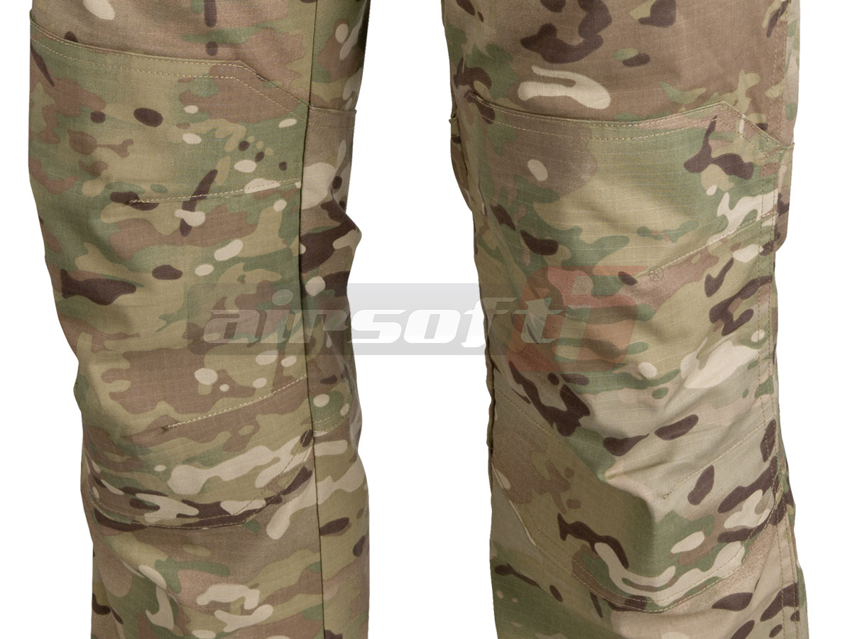 Pantalonii sunt prevazuti cu 7 gaici pentru curea pe toata suprafata taliei, pentru a putea asigura ferm centura in ideea accesorizarii acesteia. In partea din spate a taliei pantalonilor exista o sectiune elastica pentru fixarea pantalonilor. Gaicile din fata sunt prevazute cu sectiuni pentru a putea monta carabine. In zona genunchilor exista sectiuni atat in fata cat si in spate prevazute cu material aditional pentru a preveni uzura prematura. Partea dintre picioare este ramforsata cu material aditional.
