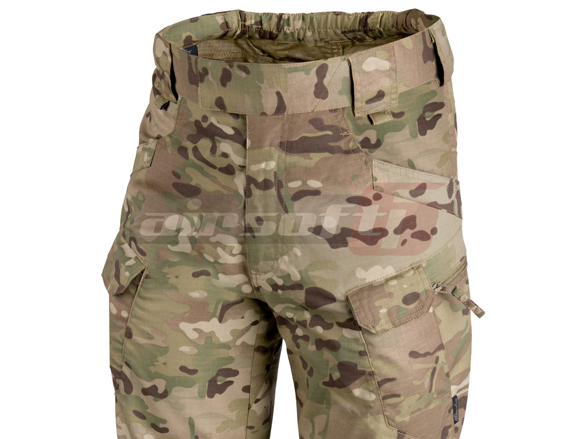 Pantalonii sunt prevazuti cu 7 gaici pentru curea pe toata suprafata taliei, pentru a putea asigura ferm centura in ideea accesorizarii acesteia. In partea din spate a taliei pantalonilor exista o sectiune elastica pentru fixarea pantalonilor. Gaicile din fata sunt prevazute cu sectiuni pentru a putea monta carabine. In zona genunchilor exista sectiuni atat in fata cat si in spate prevazute cu material aditional pentru a preveni uzura prematura. Partea dintre picioare este ramforsata cu material aditional.