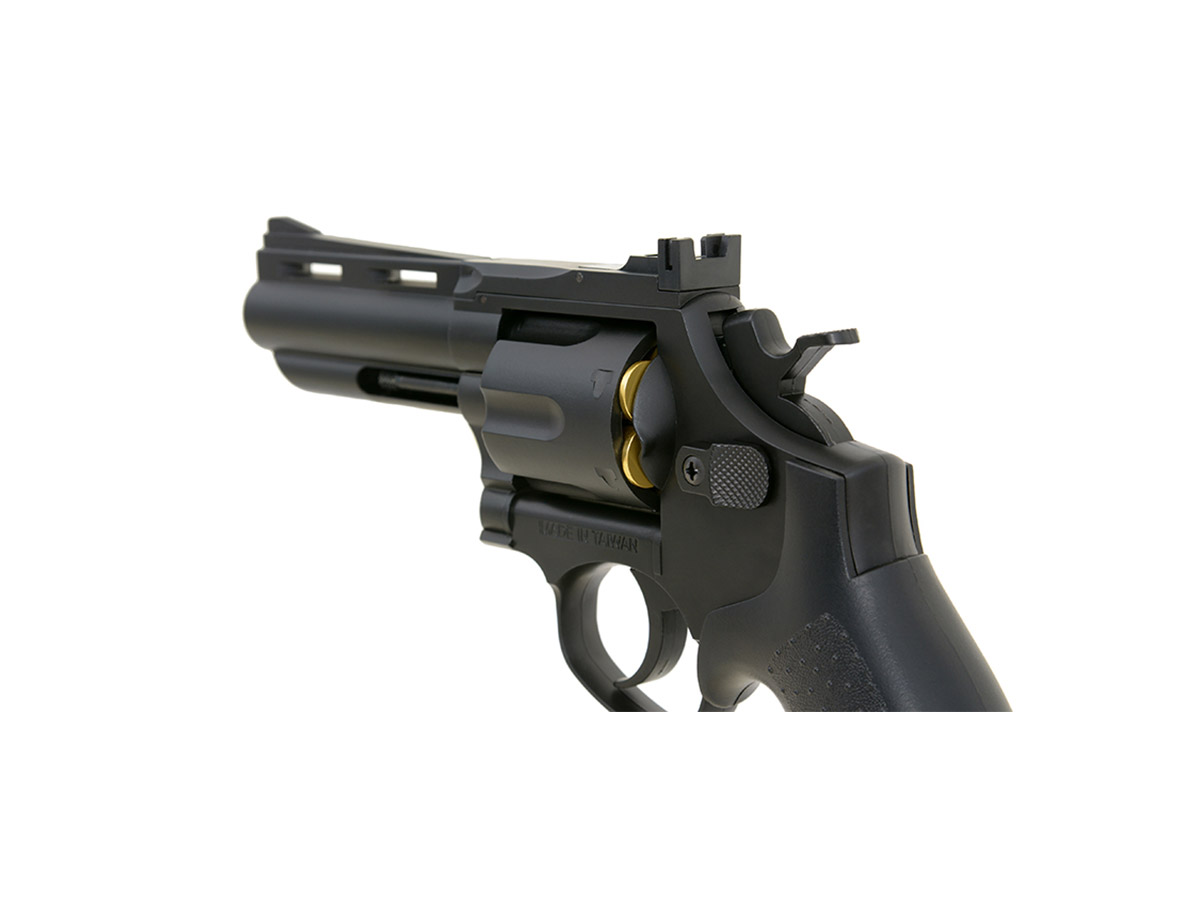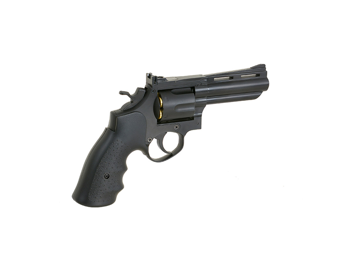 HFC HG-132 4 inch, un pistol superb dedicat colectionarilor si nu numai. Principiul de functionare este principiul revolverului iar ca sursa de gaz este green-gaz-ul inmagazinat in maner. Incarcatorul pistolului este reprezentat de cartusele false din alama care pot stoca cate o bila de 6mm fiecare, astfel cu un total de 6 bile incarcate, nu este un pistol tocmai gata de actiune pe terenul de joaca. In shimb este recomandat pentru tir sportiv ocazional. Senzatia oferita de manuirea acestei replici este cat se poate de asemanatoare cu cea a folosirii unui revolver adevarat.