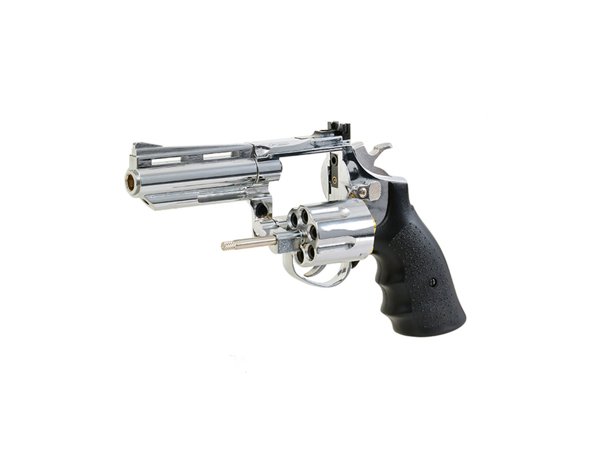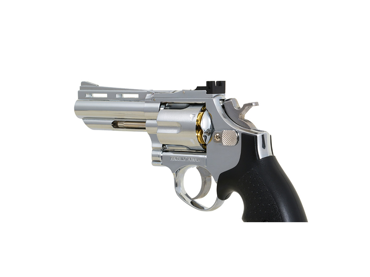 HFC HG-132 4 inch, un pistol superb dedicat colectionarilor si nu numai. Principiul de functionare este principiul revolverului iar ca sursa de gaz este green-gaz-ul inmagazinat in maner. Incarcatorul pistolului este reprezentat de cartusele false din alama care pot stoca cate o bila de 6mm fiecare, astfel cu un total de 6 bile incarcate, nu este un pistol tocmai gata de actiune pe terenul de joaca. In shimb este recomandat pentru tir sportiv ocazional. Senzatia oferita de manuirea acestei replici este cat se poate de asemanatoare cu cea a folosirii unui revolver adevarat.