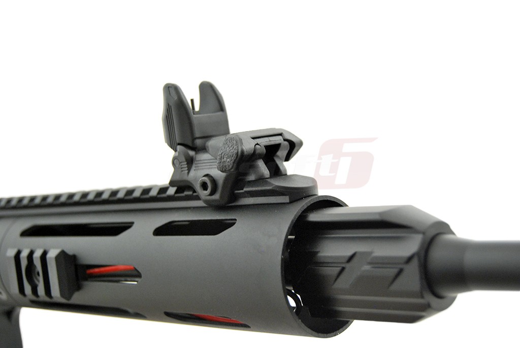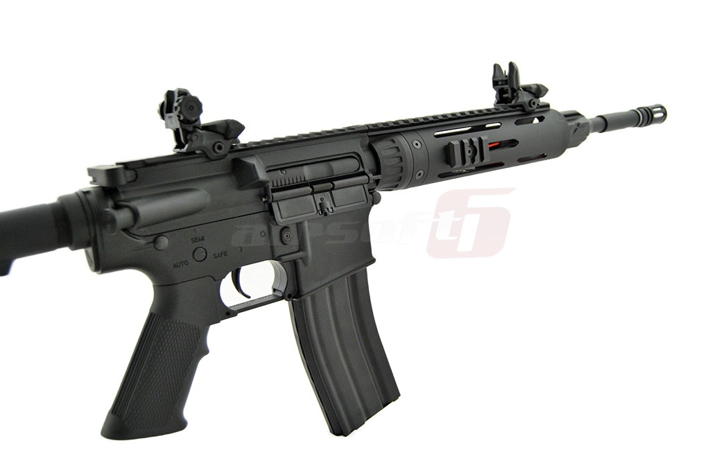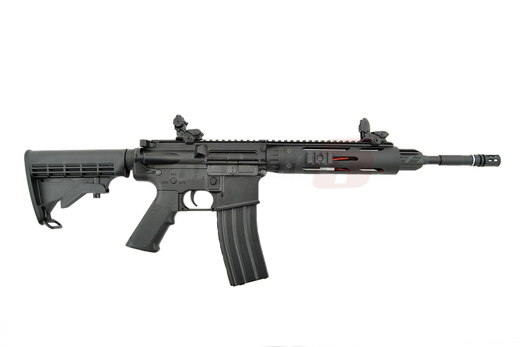 In ceea ce priveste exteriorul acestei minunate replici de airsoft este o platforma standard M4A1, mai putin partea frontala, sistemul de sine cilindric permite o buna accesorizare si ofera un design unic. Aceasta jucarie de airsoft este fabricata in mare parte din materiale metalice de calitate. manerul si patul replicii de airsoft sunt singurele componente din plastic ABS. In partea superioara pe toate lungimea corpului si a sistemului frontal exista o sina standard ce permite montarea unei mari varietati de dispozitive de ochire. Sau daca nu, producatorul a dotat replica de airsoft cu un sistem clasic de ochire, pliabil.