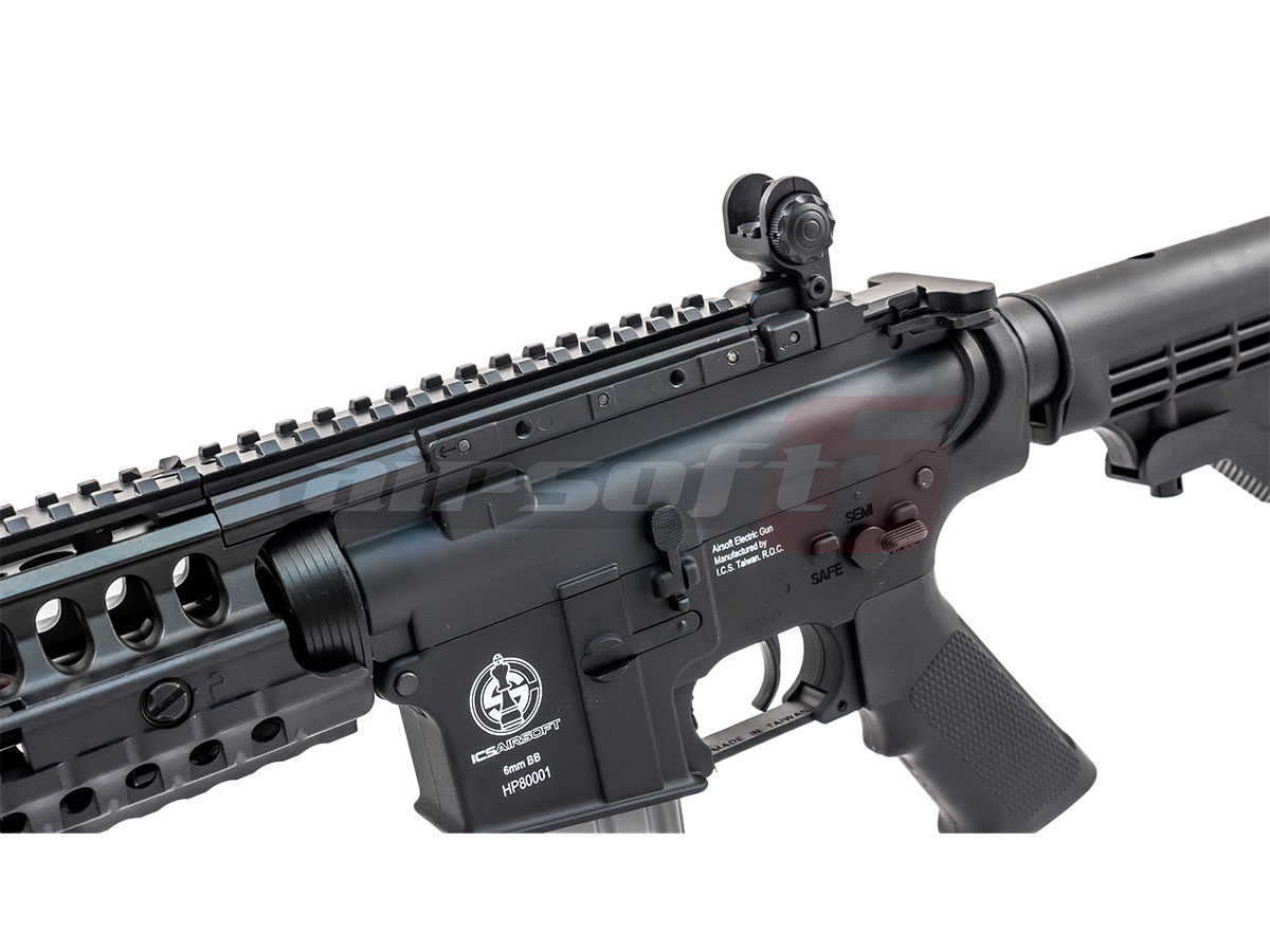 Aceasta jucarie de airsoft este prevazuta cu gearbox-ul split tipic ICS. Impartind gearbox-ul clasic in 2 parti majore; adica grupul de aer si rotile, operatiile de intretinere, modificare si adaptare devin mult mai usor de realizat. Componentele interne sunt de calitate superioara si in primul rand sunt compatibile cu majoritatea componentelor de upgrade existente pe piata. Sa nu uitam de butonul pentru decomprimarea arcului principal, pozitionat in partea dreapta a corpului replicii de airsoft, foarte util, mai ales pentru protejarea arcului replicii de airsoft. Atentie, nu uitati sa decomprimati arcul de fiecare daca cand doriti sa demontati replica de airsoft, in caz contrar se va defecta. Fiind vorba de demontare, datorita gearbox-ului split, replica de airsoft se demonteaza asemenea unei arme adevarate.