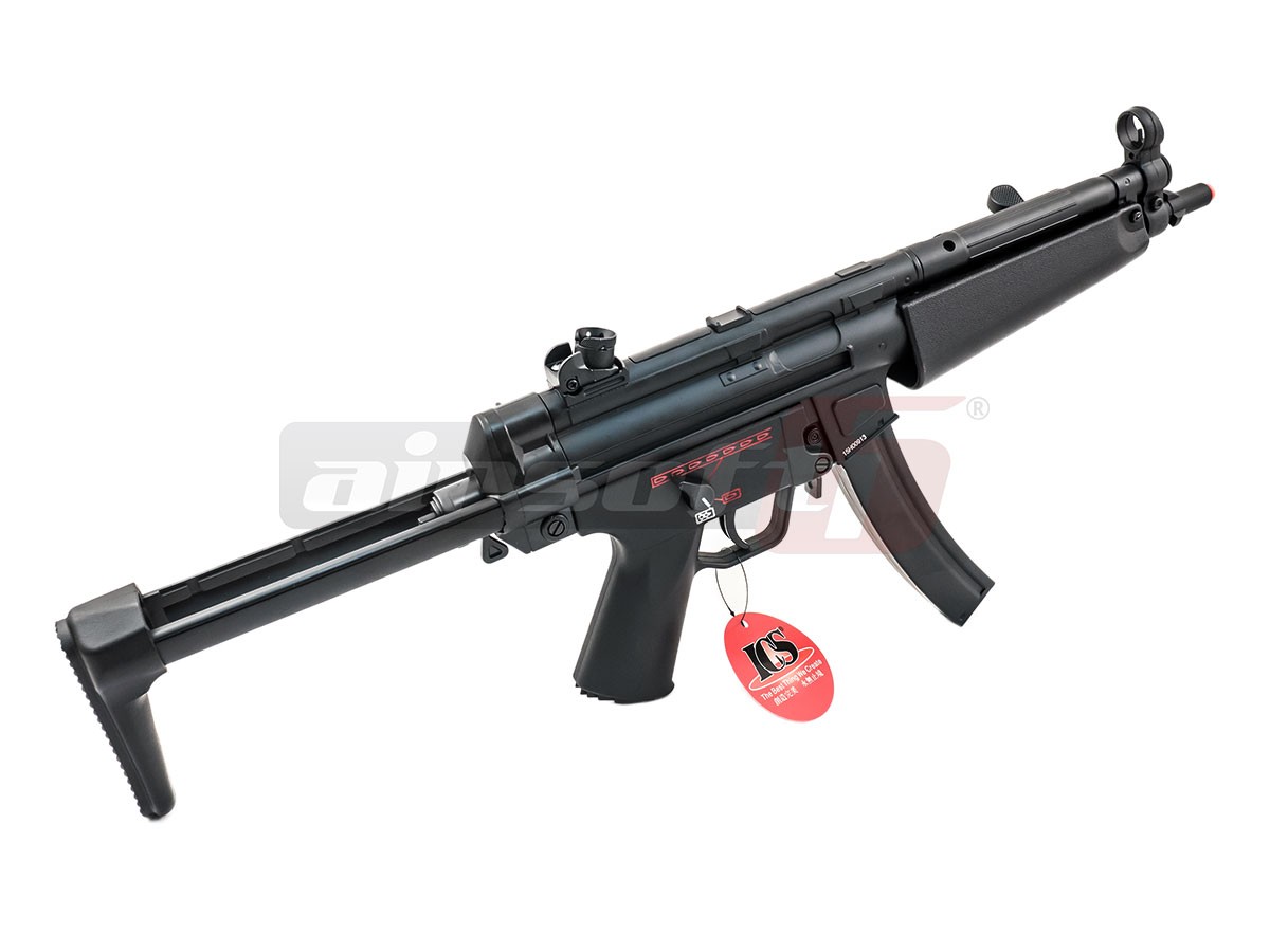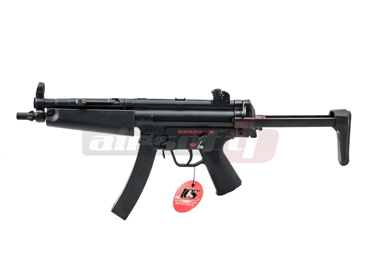 Aceasta replica de airsoft fabricata de ICS copiaza modelul MP5 N cu succes. Materialele utilizate sunt aluminiul in cazul partii superioare a corpului si plasticul ABS in cazul partii inferioare a corpului, patului si ulucului. Restul componentelor de imbinare sunt deasemenea fabricate din metal de calitate. Avand in vedere utilizarea materielelor de ultima generatie, greutatea replicii este foarte scazuta. Selectorul de tir al replicii de airsoft este ambidextru si este prevazut cu 3 pozitii aferente modurilor de tir existente. Safe, Semi, Auto. Patul replicii de airsoft este fix si astfel foarte incapator, ofera spatiu suficient pentru acumulator. Patul replicii este extensibil, permitand o exploatare usoara indiferent de modul de joc.