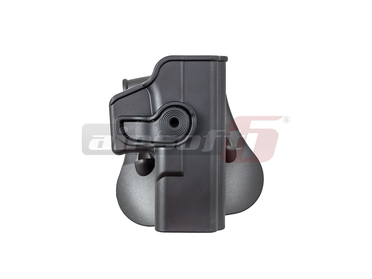 Avem placerea de a va prezenta tocul de pistol IMI Defense model Roto. Acest toc este destinat platformelor Glock 19/23/32 si este gandit pentru atasarea direct pe centura sau cu ajutorul adaptoarelor existente pe piata, pe platforme de tip molle. Este un toc rigid, fabricat din polimer plastic iar asigurarea pistolului in pozitie se realizeaza cu ajutorul unui pinten intern. Avantajul acestui toc este usurinta de exploatare. Se fixeaza rapid pe centura iar odata fixat, introducerea si extragerea pistolului este extrem de rapida. Modelul se numeste Roto datorita posibilitatii de rotire a intregului ansamblu 360° prin simpla operare a unui surub inbus.
