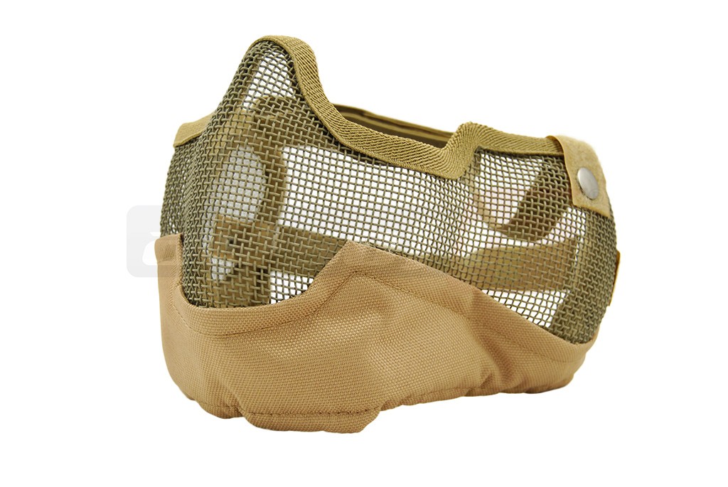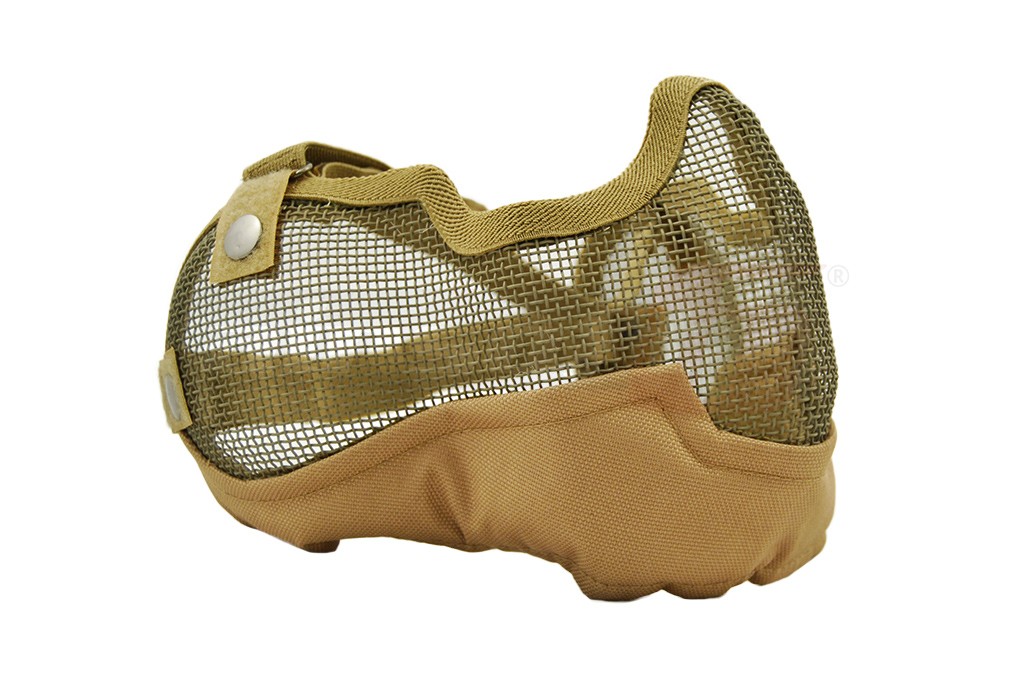Masca pentru protectia gurii si a urechilor fabricata din sarma otelita impletita foarte rezistenta. Sistemul de prindere si conturul sunt fabricate din nylon 600D rezistent. Aceasta masca se prinde cu ajutorul a doua chingi elastice asigurate cu arici.