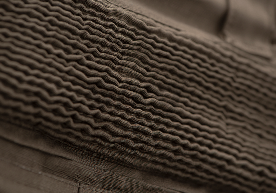 Sub zona centurii și în jurul genunchilor este amplasat material elastic pentru confort și mobilitate ridicată. Nivelul suplimentar de protecție este asigurat de plăcuțele incluse concepute pentru a proteja articulațiile prin distribuirea eficientă a energiei de impact.