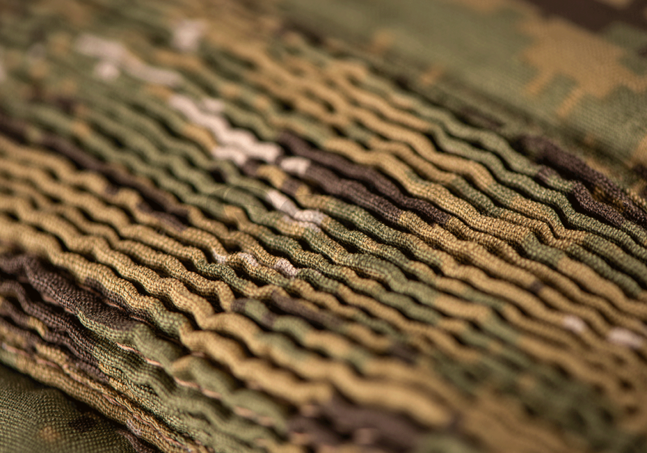 Pantalonii sunt prevazuti cu gaici pentru curea pe toata suprafata taliei, pentru a putea asigura ferm centura in ideea accesorizarii acesteia. In partea din spate a taliei pantalonilor exista o sectiune elastica pentru fixarea pantalonilor. Zone genunchilor este asigurata de un set de genunchiere rigide montate in compartimentul special al pantalonilor. Pentru evacuarea caldurii excesive, desupra genunchilor si deasupra mijlocului existe sectiuni din material poros. In spatele genunghilor exista chingi prevazute cu arici pentru fixarea pozitiei pantalonilor.