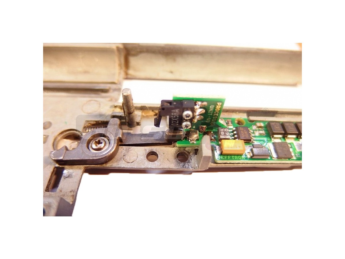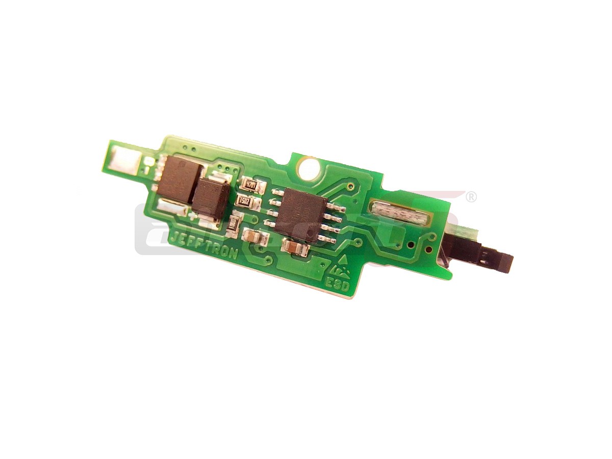 Mosfetul de fata este modelul Processor unit V3. Aceasta este cea mai rafinata optiune prevazuta cu procesor oferita de Jefftron. Aceasta varianta de mosfet permite montarea direct in interiorul gearbox-ului, inlocuind contactul mecanic al gearbox-ului. Astfel toate optiune modurilor de foc sunt inlocuite cu senzori si microcontacti capabili sa ofere un feedback net superior comenzilor mecanice. Rapunsul tragaciului este net superior iar selectia modului de foc este mult imbunatatita.Functiile sale sunt dupa cum urmatoarele: