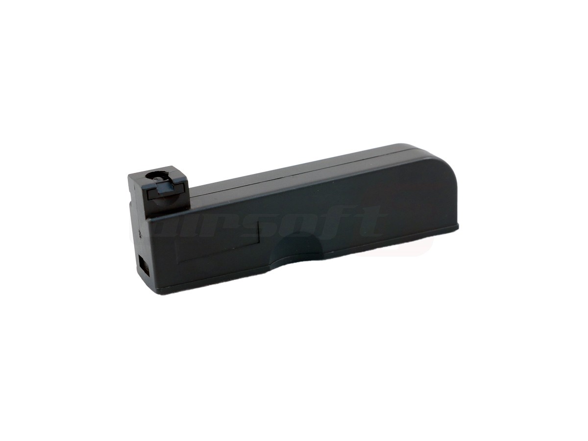 Acest incarcator este destinat modelului de sniper Jing Gong BAR10 dar si celorlalte surate de sniper bazate pe aceeasi platforma. Este fabricat in intregime din plastic si poate inmagazina pana la 30 de bile de 6mm. Functionarea lui este pe baza de arc iar alimentarea cu bile se realizeaza prin orificiul destinat alimentarii replicii.