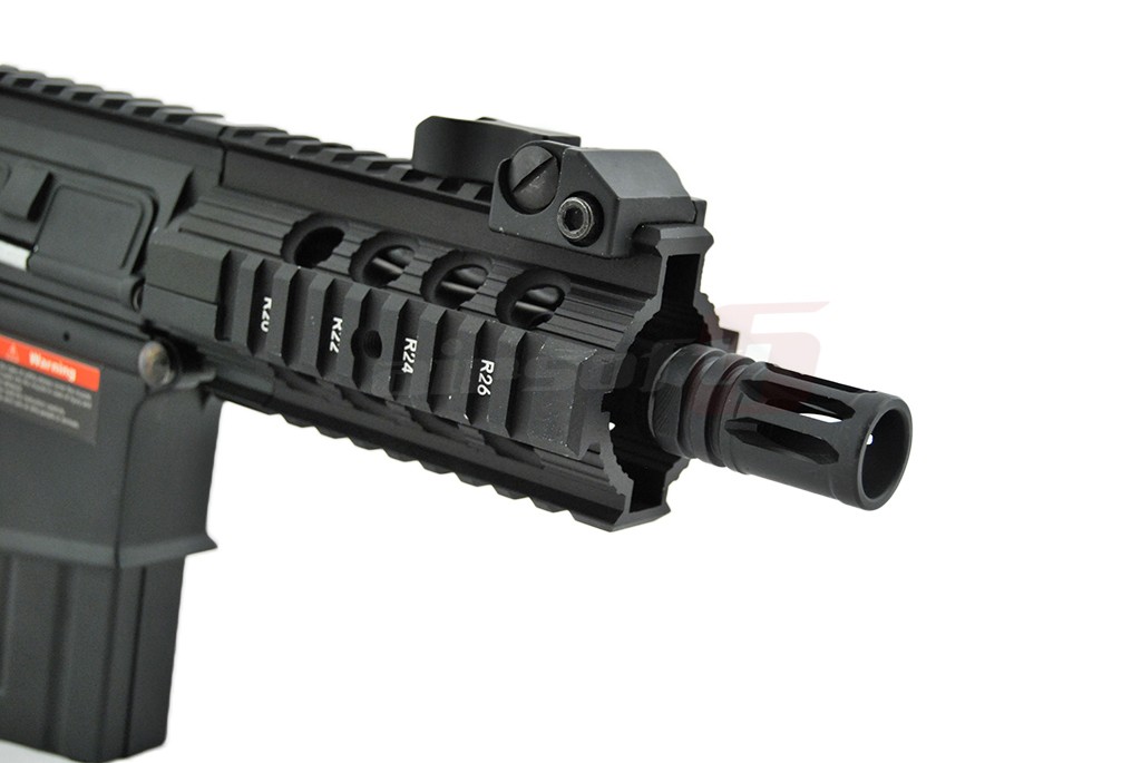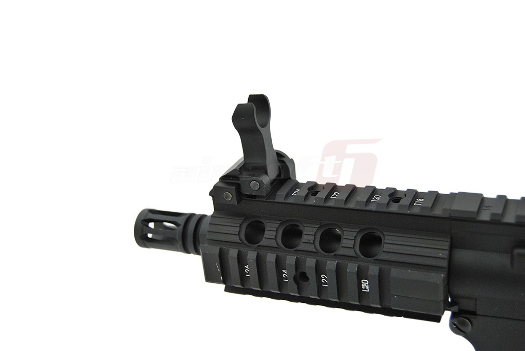 In partea frontala exista un sistem de sine free float ce imbunatateste accesorizarea replicii. In partea superioara exista 2 sisteme de ochire metalice rabatabile.
