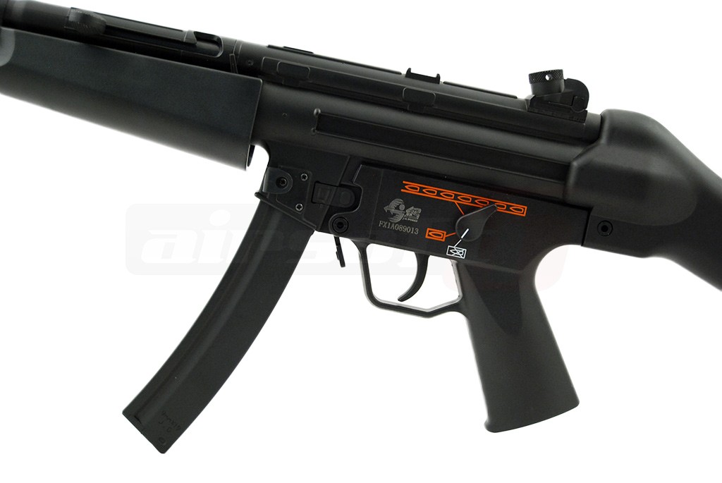Unul din modelele celebrului MP5 construit de Heckler & Koch, MP5-A4 este dotat cu unul din ultimele modele de Trigger Group. Ce diferentiaza acest trigger grup de celelalte modele sunt capabilitatile multiple de tir. Pictogramele clasice SEF adica Safe, Semi, Auto au tost inlocuite cu simboluri reprezentate de gloante pentru o mai buna percepere a functiilor.