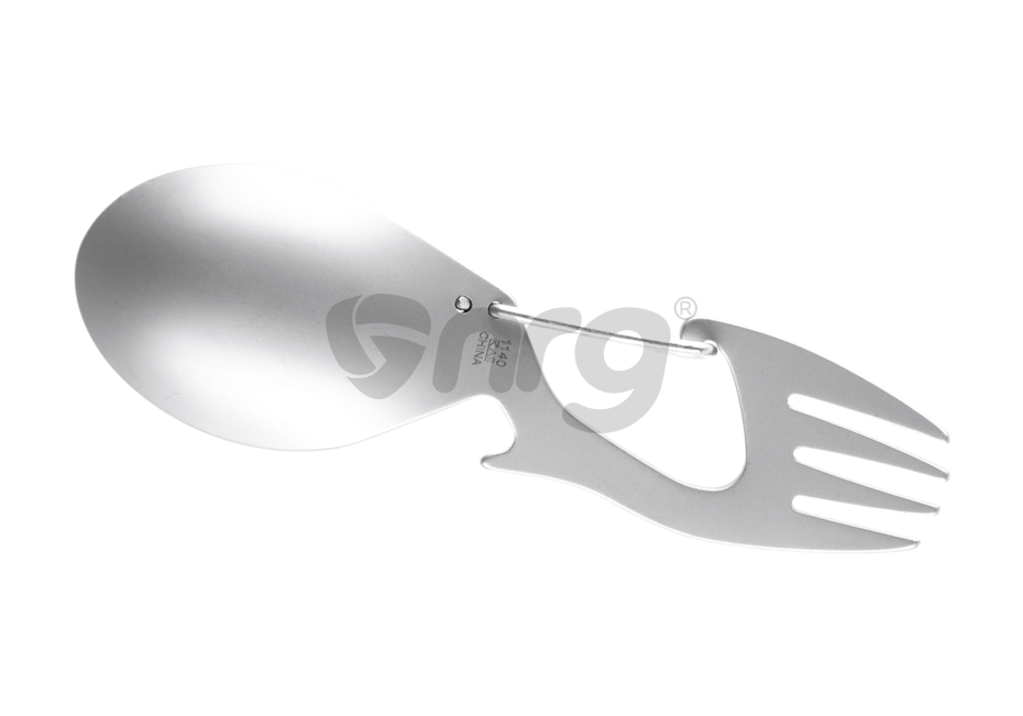 Acest produs este o unealta multifuncitonala pentru mancat. Practic sunt 4 ustensile intr-una singura. Lingura, furculita, desfacator de capace si carabina. Este realizat din aluminiu si este usor de spalat si refolosit.