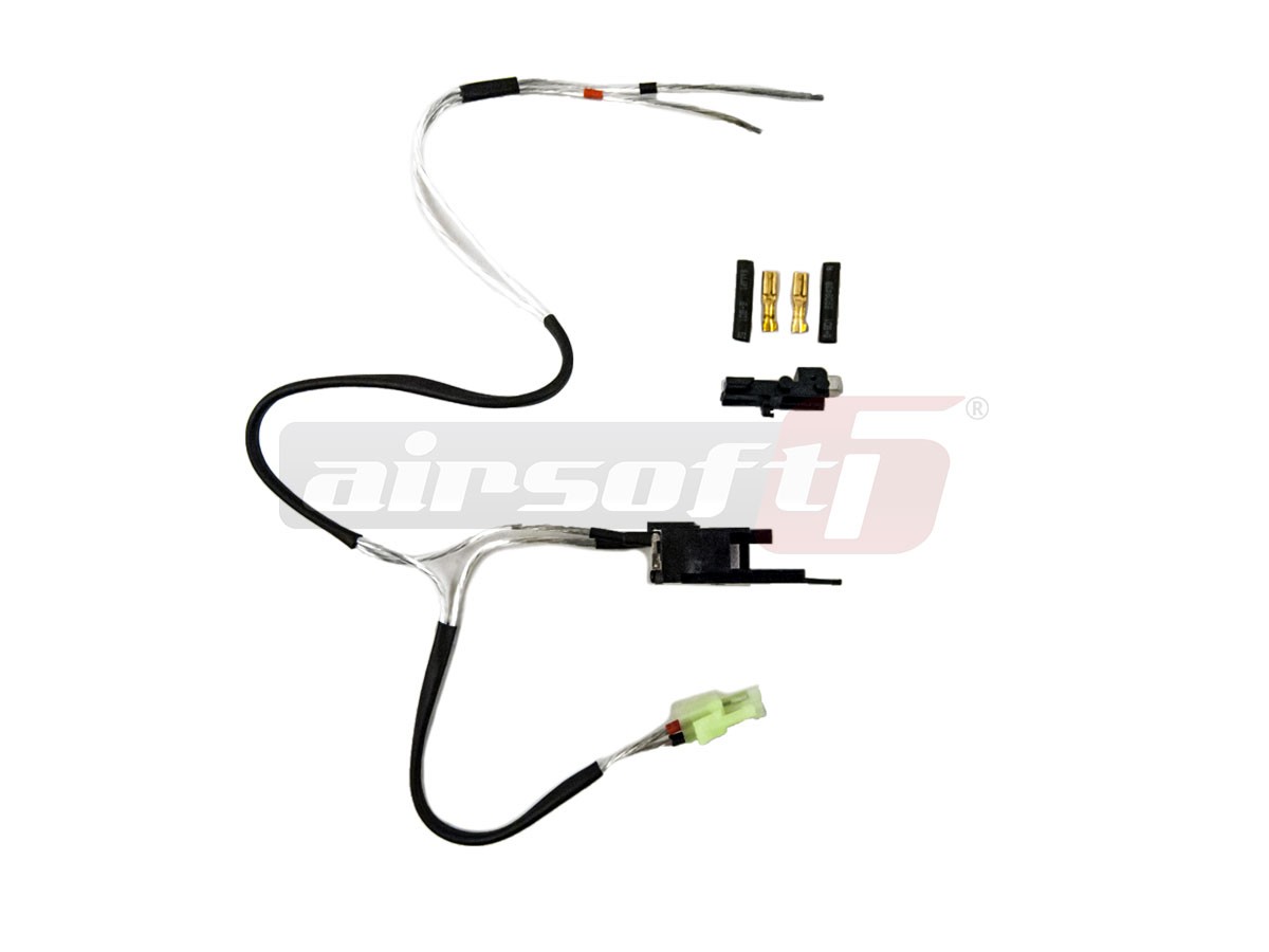 Acest set cuprinde toate componentele necesare pentru a inlocui toata instalatia electrica a unei replici de airsoft tip AEG. Corpul contactului este fabricat din policarbonat rezistent la temperaturi inalte. Lamelele contactului sunt fabricate din alama iar cablurile au rezistenta scazuta. Izolatia cablurilor este de calitate prevenind un scurt-circuit. In pachet sunt incluse urmatoarele: Contact intreg V3 pentru platforma G36, cabluri ce necesita cositorirea pe motor si mufa tamiya mini pentru alimentare, conectata la instalatie, papuci pentru motor cu izolatii. In pachet nu este inclus arcul contactului.