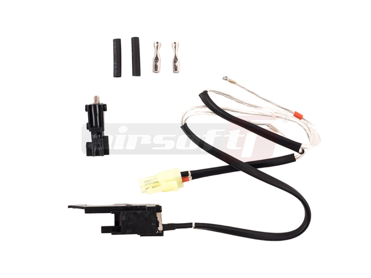 Acest set cuprinde toate componentele necesare pentru a inlocui toata instalatia electrica a unei replici de airsoft tip AEG. Corpul contactului este fabricat din policarbonat rezistent la temperaturi inalte. Lamelele contactului sunt fabricate din alama iar cablurile au rezistenta scazuta. Izolatia cablurilor este de calitate prevenind un scurt-circuit. In pachet sunt incluse urmatoarele: Contact intreg V3, cabluri ce necesita cositorirea pe motor si mufa tamiya mini pentru alimentare, conectata la instalatie, papuci pentru motor cu izolatii. In pachet nu este inclus arcul contactului.