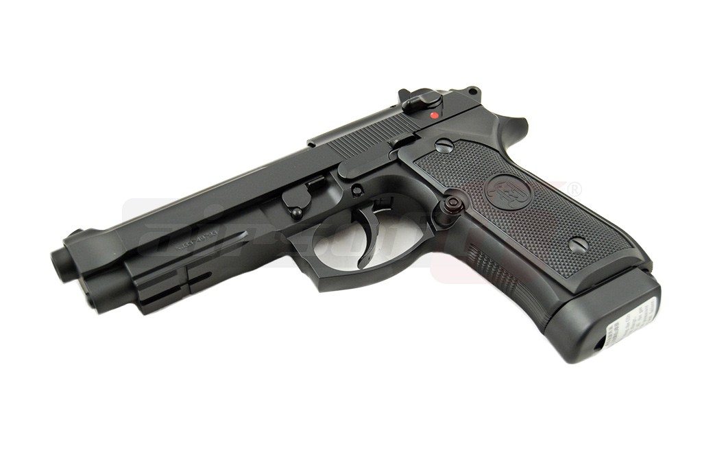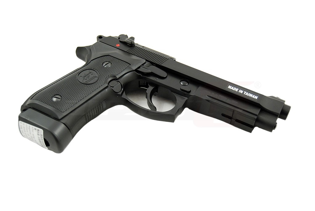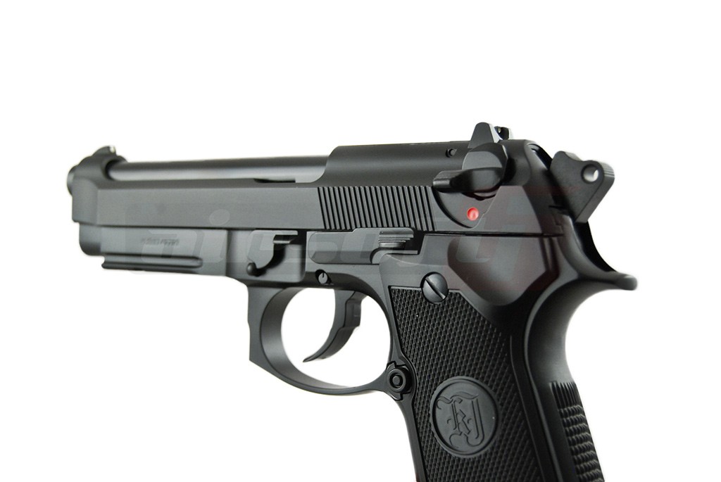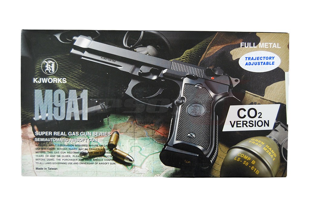 Aceasta replica de airsoft produsa de KJW copiaza pistolul M9A1, replicand atat aspectul exterior cat si functionalitatea acestuia. Este fabricat in intregime din metal cu preselele din plastic ABS oferind astfel o senzatie de autenticitate in momentul exploatarii. Reculul are un sunet metalic si o putere destul de mare. In partea frontala exista o sina pe care pot fi montate accesorii tractice precum lasere sau lanterne. Siguranta este ambidextra, situata deasupra manerului in spatele mansonului. In partea dreapta exista butonul pentru indepartarea incarcatorului, mag catch.