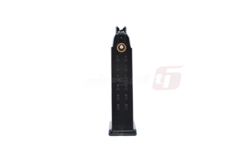 Incarcator produs de catre KJ Works pentru pistoalele de airsoft seria G23/ 32. Acest incarcator poate fi folosit cu gaz Green Gas sau alte variante de gaz cu propietati asemanatoare. Este construit din metal iar gura de alimentare cu bile este din plastic. Capacitatea incarcatorului este de 20 de bile de 6mm.