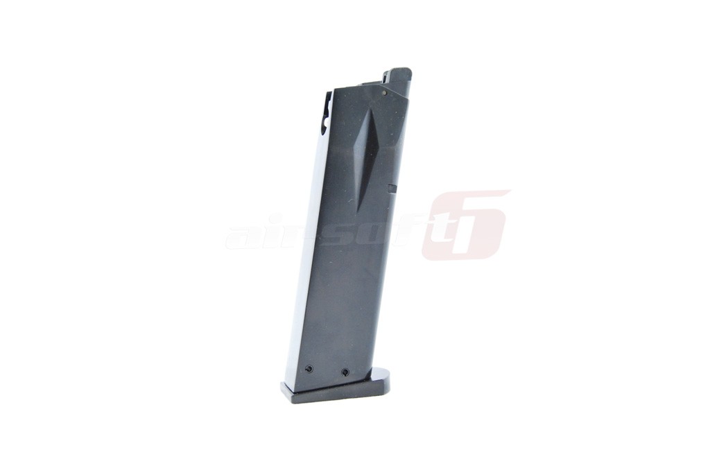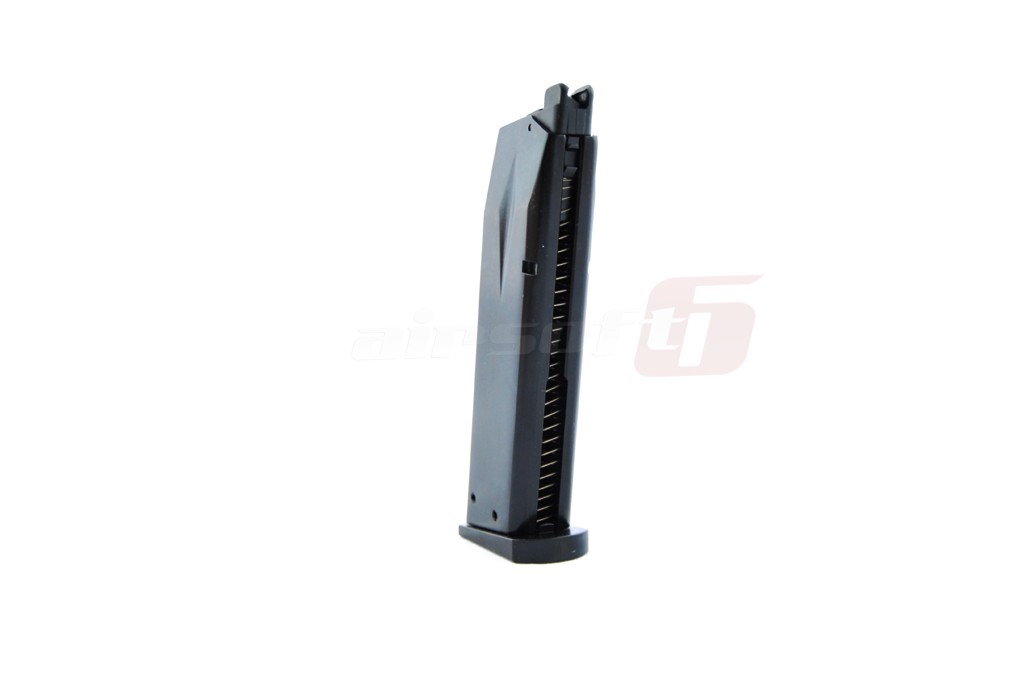 Incarcator produs de catre KJ Works pentru pistoalele de airsoft seria SIG P226. Acest incarcator poate fi folosit cu gaz Green Gas sau alte variante de gaz cu propietati asemanatoare. Este construit din metal iar gura de alimentare cu bile este din plastic. Capacitatea incarcatorului este de 25 de bile de 6mm.