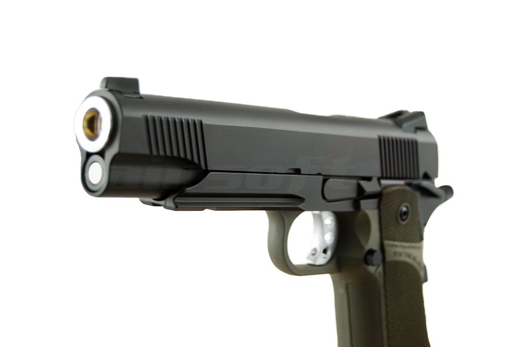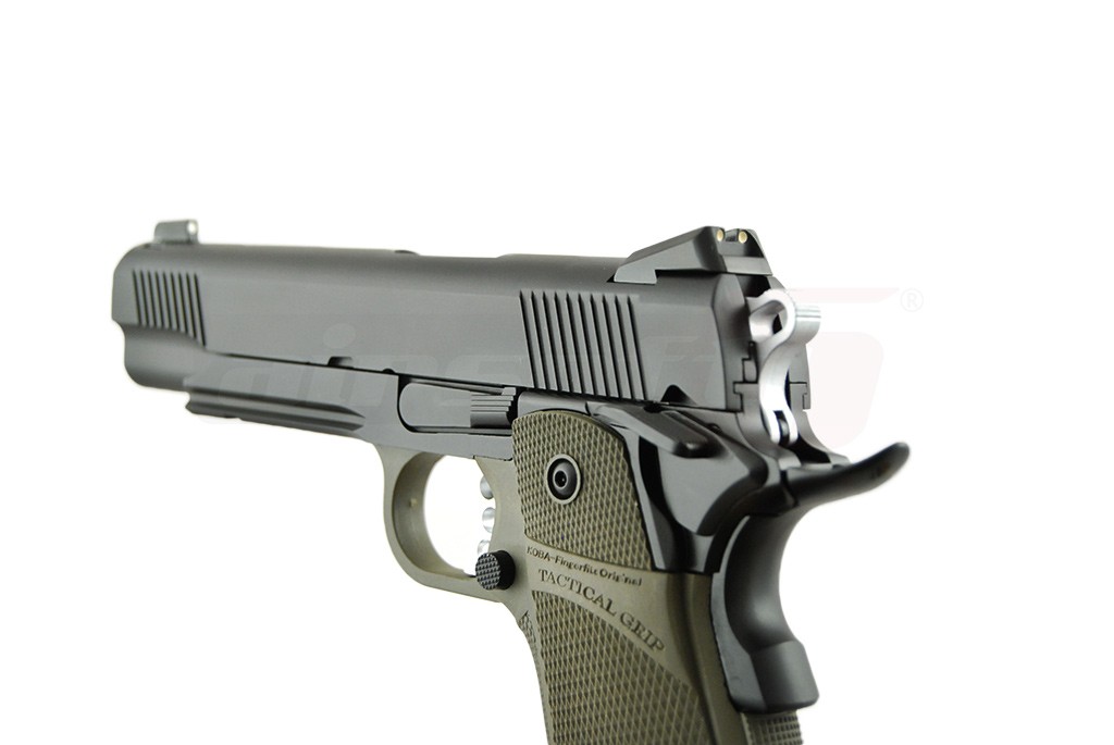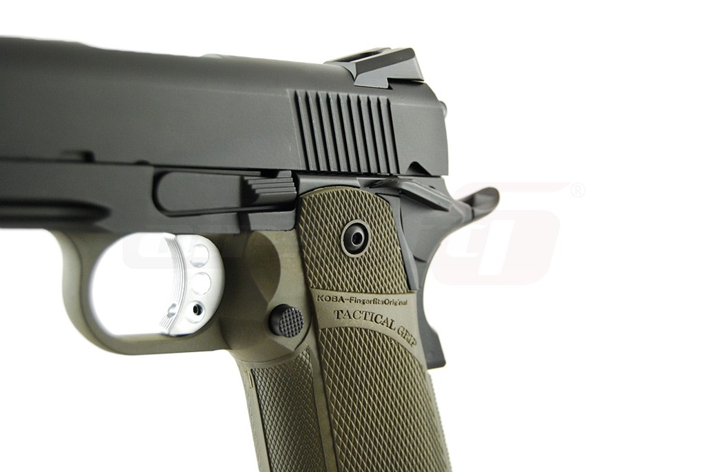 Aceasta jucarie fabricata este fabricata de catre KJW in mare parte din metal. Datorita platformei Hi-Capa, manerul este fabricat din plastic ABS de calitate. Acest lucru contribuind la scaderea greutatii iar in caz de avarie se poate inlocui fara probleme doar aceasta componenta. Finisajele replicii de airsoft sunt foarte bune, teava externa fiind cromata iar vopseaua aplicata pe restul componentelor este foarte rezistenta. Catarea spate este reglabila. Aceasta jucarie copiaza elementele de siguranta specifice 2011 si anume; Siguranta in spatele manerului, care fara o prindere ferma a pistolului nu permite actionarea cocosului si siguranta cocosului, aceasta siguranta este ambidextra.