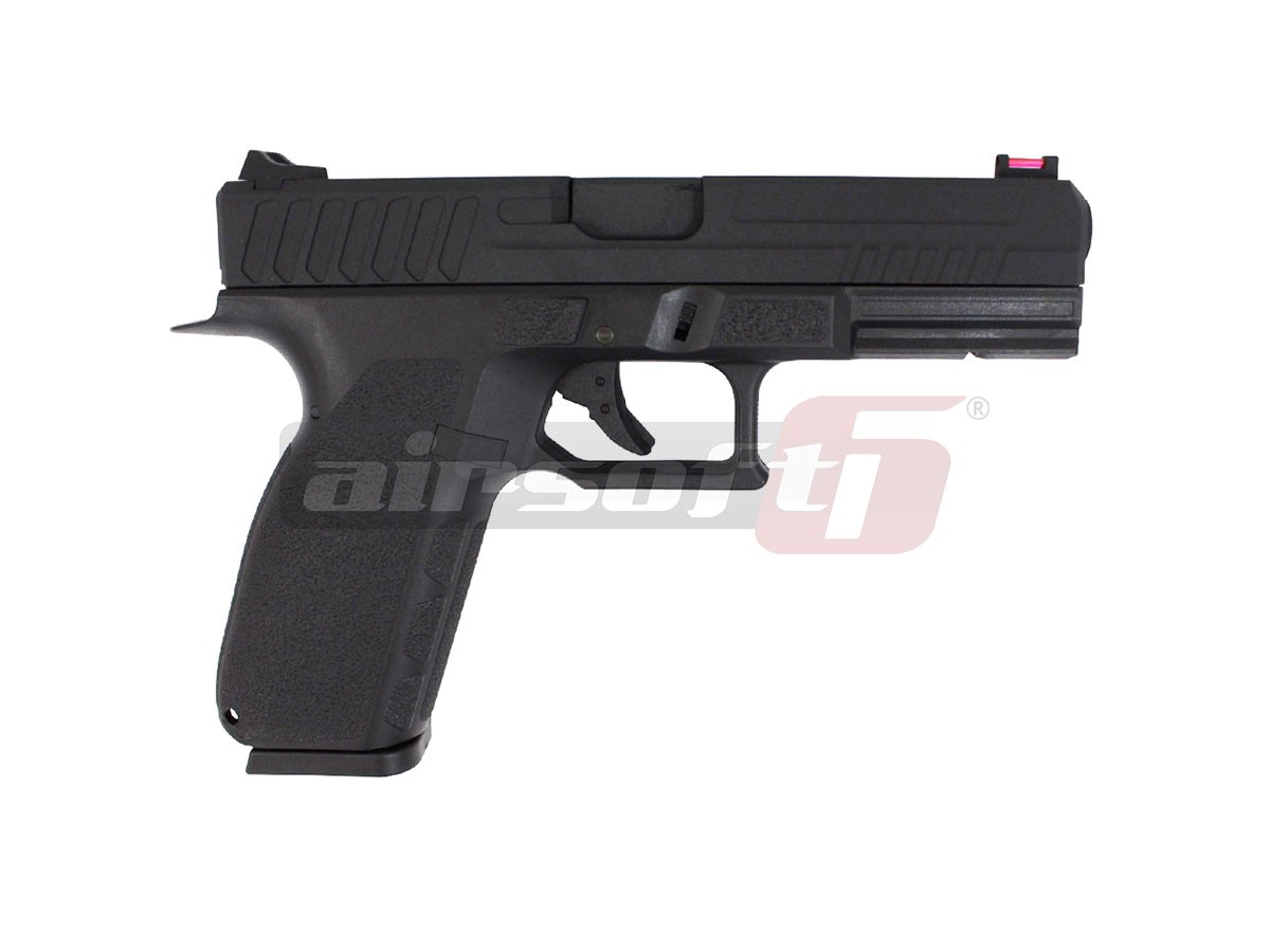 Aceasta jucarie fabricata de catre KJW KP-13, este fabricata atat din plastic, in partea inferioara, cat si din metal in ceea ce priveste mansonul. Replica ofera o senzatie de robustete in timpul manuirii. Cam cum ar trebui sa o faca toate replicile de airsoft. Catarile sunt usor de exploatat dar din pacate fixe. Designul slide-ului va oferi o prindere buna in momentul armarii. In partea frontala exista o sina standard pe care vor putea fi montate accesorii dupa bunul plac. Comenzile replicii sunt amplasate pe partea stanga, fiind un pistol orientat catre dreptaci.
