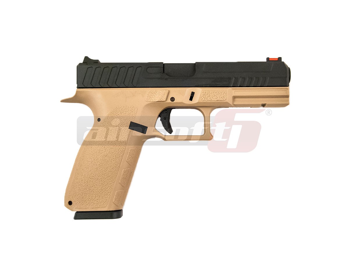 Aceasta jucarie fabricata de catre KJW KP-13, este fabricata atat din plastic, in partea inferioara, cat si din metal in ceea ce priveste mansonul. Replica ofera o senzatie de robustete in timpul manuirii. Cam cum ar trebui sa o faca toate replicile de airsoft. Catarile sunt usor de exploatat dar din pacate fixe. Designul slide-ului va oferi o prindere buna in momentul armarii. In partea frontala exista o sina standard pe care vor putea fi montate accesorii dupa bunul plac. Comenzile replicii sunt amplasate pe partea stanga, fiind un pistol orientat catre dreptaci.