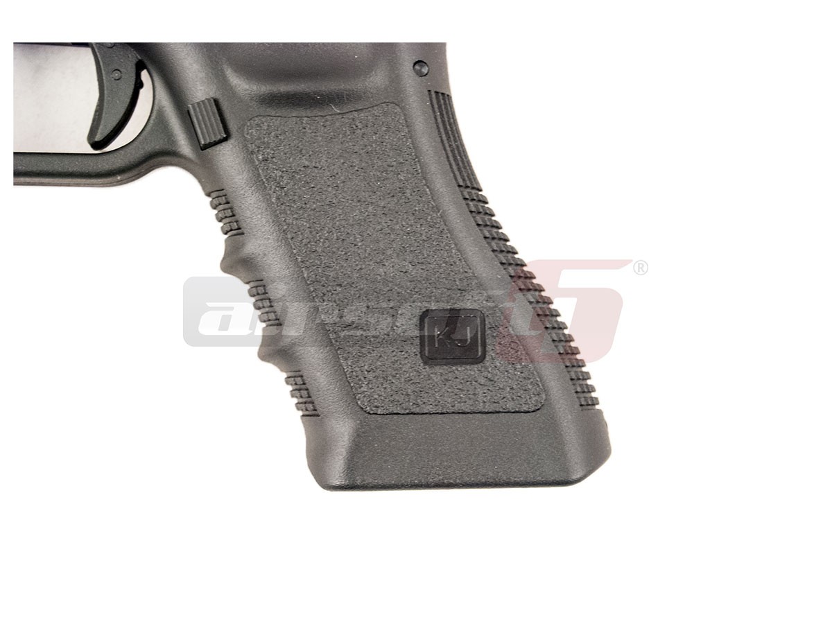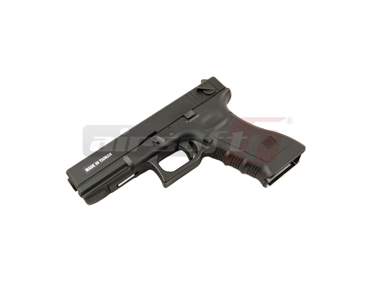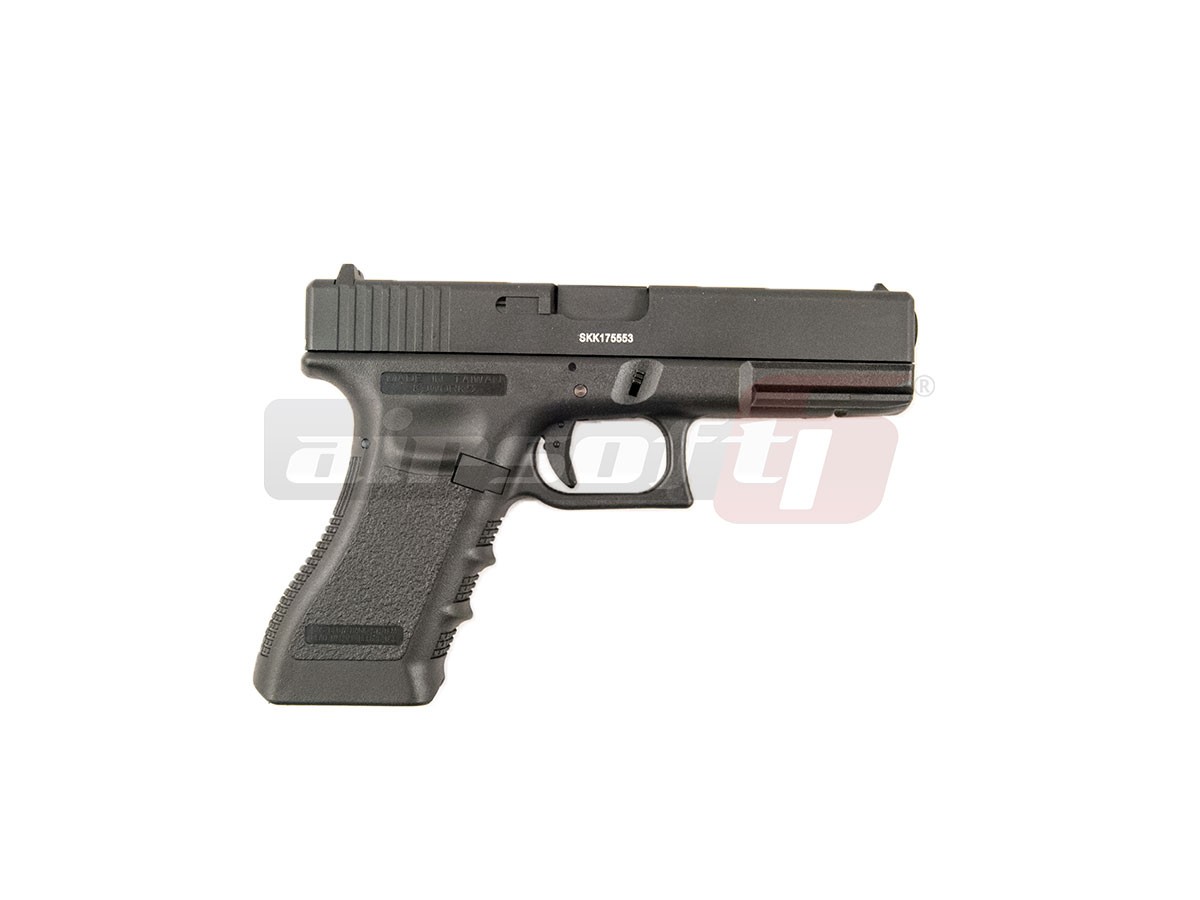 Aceasta jucarie este fabricata de catre KJW si imita platforma G18C. Asemanator platformei adevarate G18, manerul este fabricat din plastic ABS iar mansonul este din metal. Finisajele replicii de airsoft sunt bune, toate comenzile si ornamentele sunt aproximativ unde trebuie sa fie. Selectorul de tir este situal in partea din spate si in stanga mansonului. El are 2 pozitii, foc cu foc si foc automat. In partea din fata a tragaciului, in dreptul sinei tactice, exista siguranta de depozitare a replicii. Mai exista o singura siguranta si anume pe tragaci. Butonul de eliberare a incarcatorului este in partea din stanga iar asemenea armei adevarate, deasupra tragaciului exista sistemul de demontare.
