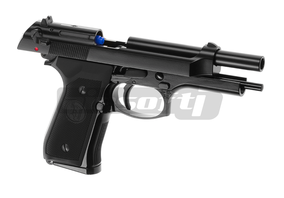 Aceasta replica de airsoft produsa de KJW copiaza pistolul M9, replicand atat aspectul exterior cat si functionalitatea acestuia. Este fabricat din ABS si metal. Siguranta este ambidextra, situata deasupra manerului in spatele mansonului. In partea dreapta exista butonul pentru indepartarea incarcatorului, mag catch.