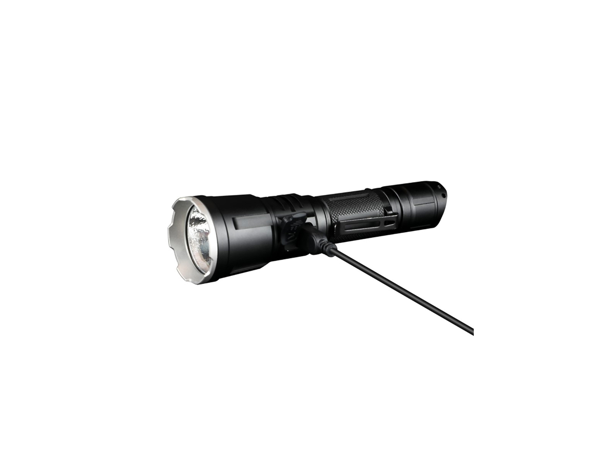 Lanterna este livrata cu un cablu de incarcare USB/micro-usb, o cordelina pentru sustinere, un acumulator reincarcabil Li-ion 3.6V 3100mAh si o teaca pentru transport din cordura. Lanterna poate functiona cu acumulatori 18650 normali dar si cu 2 baterii CR123A.