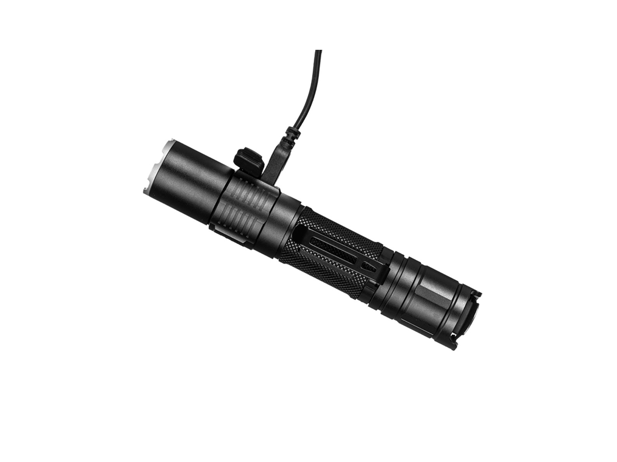 Lanterna este livrata cu un cablu de incarcare USB/micro-usb, o cordelina pentru sustinere, un acumulator reincarcabil Li-ion 3.7V 3600mAh si o teaca pentru transport din cordura. Lanterna poate functiona cu acumulatori 18650 normali dar si cu baterii CR123A.