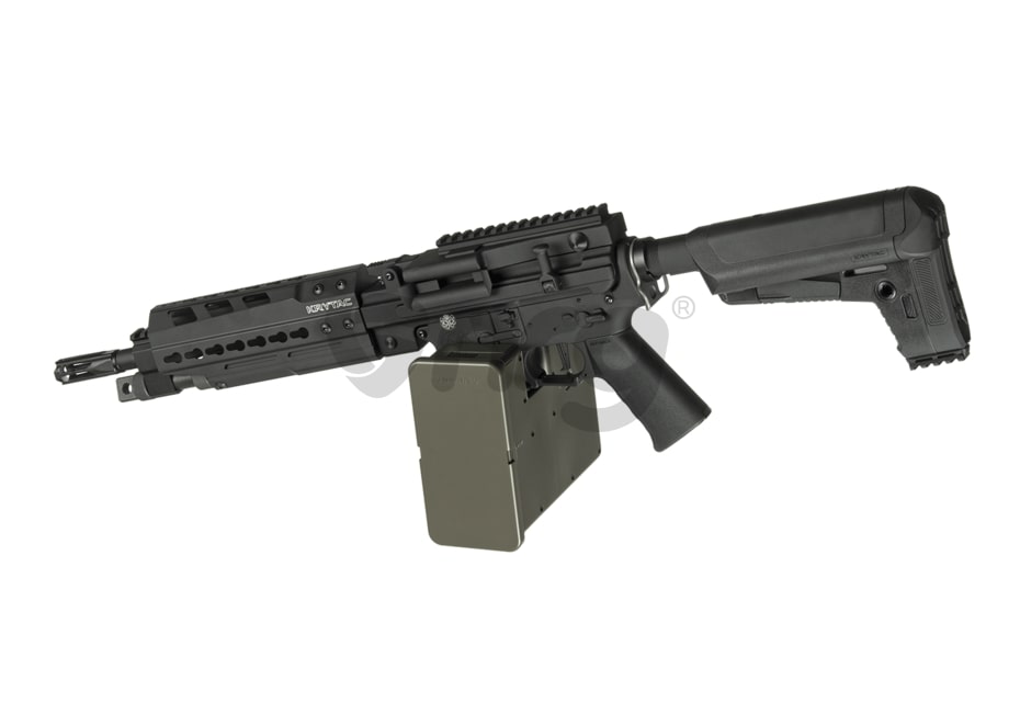Acest LMG este echipat cu un selector ambidextru ce permite utilizarea confortabilă nu numai pentru utilizatorii stângaci, ci și pentru toți trăgătorii, deoarece natura ambidextră este crucială într-un mediu dinamic. Gearbox-ul tip Trident are rulmenti de 8 mm ranforsati, piston polimer cu patru dinți metalici, cap cilindru captusit, motor high-torquecu și un sistem de schimbare rapidă a arcului.