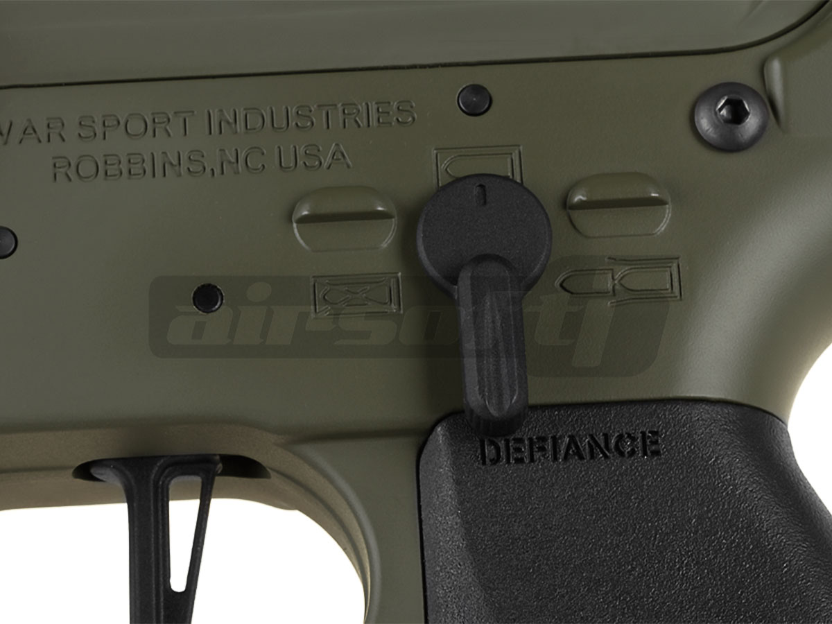 Partea interesanta este gearbox-ul, in care au investit multe resurselor pentru a oferi un produs final de calitate superioara. Aliajul din care este realizata carcasa este unul foarte rezistent, eliminand din problemele generate de arcurile puternice. Designul gearbox-ului este relativ standard, permitand inlocuirea majoritatii componentelor interne dupa bunul plac. Nu se putea spune ca am pasit in secolul urmator decat daca replica este dotata arc usor inlocuibil. Producatorul a dotat replica cu un mosfet simplu pentru a elimina arderea contactului existent in urma utilizarii acumulatorilor LiPo si a motorului de mare putere cu care este dotata replica. Viteza proiectilelor este in jur de 115 - 120 m/s masurata cu bile de 0.20g. Teava interna are un diametru de 6.05mm iar camera de hop permite un reglaj fin al nivelului de hopup, datorita insemnelor de pe roata de reglaj.