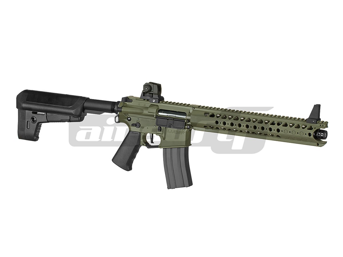 Partea interesanta este gearbox-ul, in care au investit multe resurselor pentru a oferi un produs final de calitate superioara. Aliajul din care este realizata carcasa este unul foarte rezistent, eliminand din problemele generate de arcurile puternice. Designul gearbox-ului este relativ standard, permitand inlocuirea majoritatii componentelor interne dupa bunul plac. Nu se putea spune ca am pasit in secolul urmator decat daca replica este dotata arc usor inlocuibil. Producatorul a dotat replica cu un mosfet simplu pentru a elimina arderea contactului existent in urma utilizarii acumulatorilor LiPo si a motorului de mare putere cu care este dotata replica. Viteza proiectilelor este in jur de 115 - 120 m/s masurata cu bile de 0.20g. Teava interna are un diametru de 6.05mm iar camera de hop permite un reglaj fin al nivelului de hopup, datorita insemnelor de pe roata de reglaj.