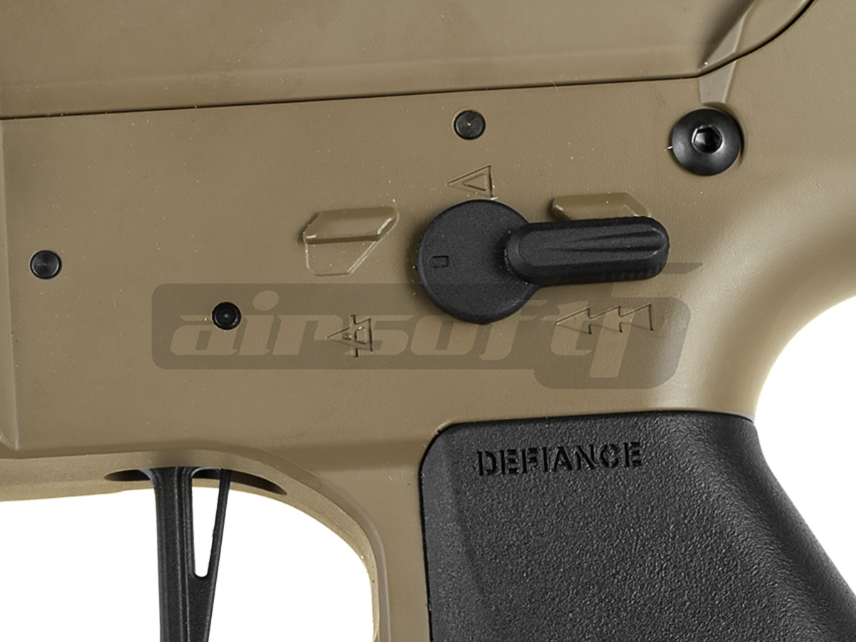 Partea interesanta este gearbox-ul, in care au investit multe resurselor pentru a oferi un produs final de calitate superioara. Aliajul din care este realizata carcasa este unul foarte rezistent, eliminand din problemele generate de arcurile puternice. Designul gearbox-ului este relativ standard, permitand inlocuirea majoritatii componentelor interne dupa bunul plac. Nu se putea spune ca am pasit in secolul urmator decat daca replica este dotata arc usor inlocuibil. Producatorul a dotat replica cu un mosfet simplu pentru a elimina arderea contactului existent in urma utilizarii acumulatorilor LiPo si a motorului de mare putere cu care este dotata replica. Viteza proiectilelor este in jur de 95-100 m/s masurata cu bile de 0.20g. Teava interna are un diametru de 6.05mm iar camera de hop permite un reglaj fin al nivelului de hopup, datorita insemnelor de pe roata de reglaj.